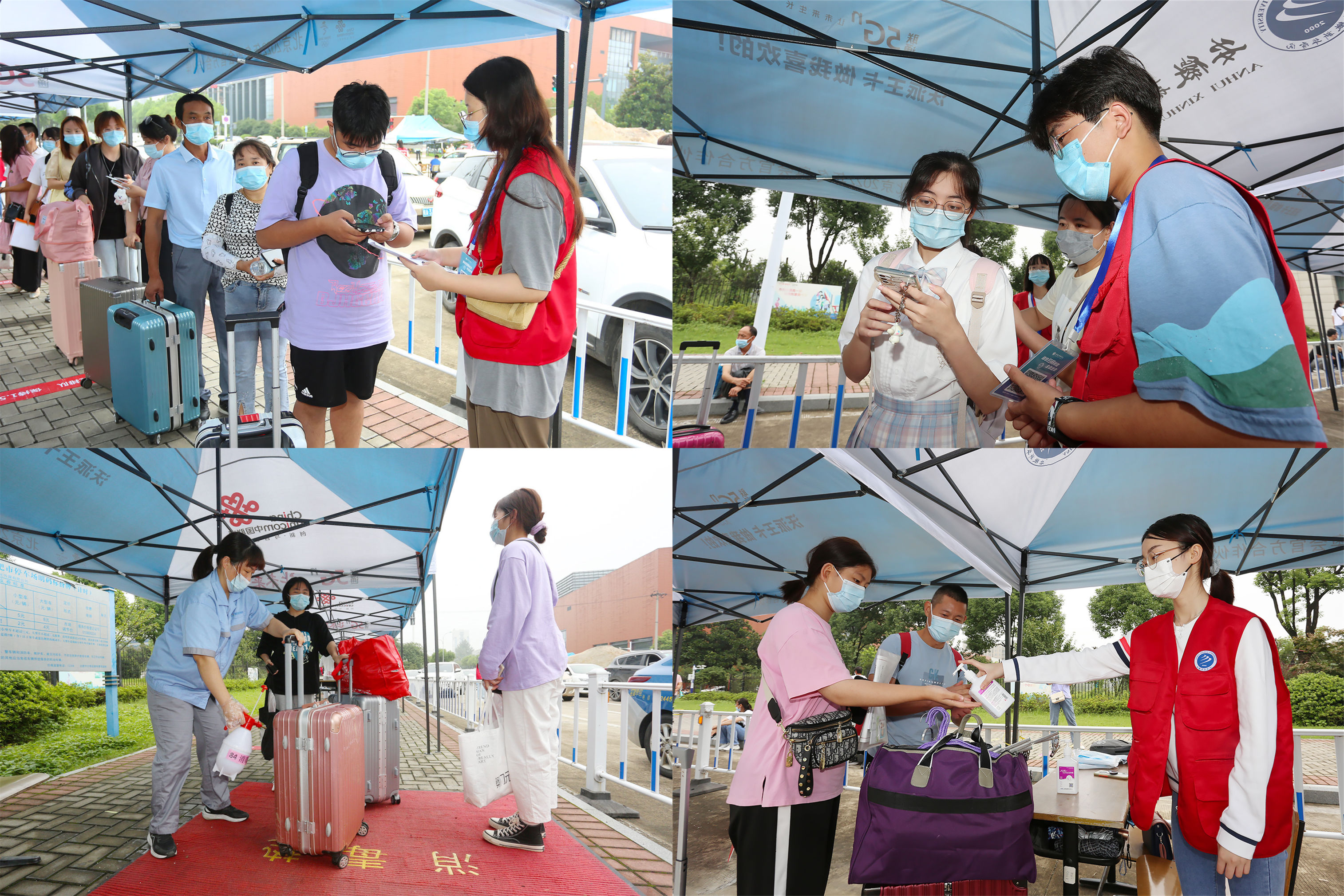 入校当天,bat365东门、西门开设了专用通道,工作人员和志愿者们清晨便已就位,迎接新生的到来。前来报到的新生在工作人员的引导下,佩戴口罩、间隔1米以上,有序穿过学校闸门,进入新生报到专用通道,在完成返校码、安康码、行程卡核验,手部清洁、更换口罩、测量体温、行李消杀等流程后,来到学院迎新展台和报到点正式办理报到手续,领取有关物品。