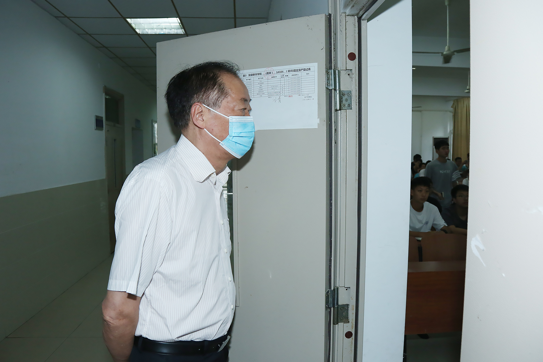 本网讯(通讯员:车畅 摄影:翟漱文、陆如海)9月2日上午,新学期学生陆续返校后全面上课第一天。为确保新学期教学工作顺利进行,校执行董事长储国定,省督导专员、校党委书记邸建伟,常务副校长王丽,副校长杨世国,校长助理王琦进、盛晓青、邵玲在教务处、质量监控与评估处、学生处、督查督导处相关人员和各教学单位负责人陪同下,到各教学楼对新学期上课情况进行巡视检查。