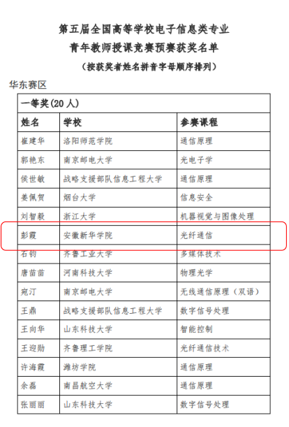 bat365教师在全国高等学校电子信息类专业青年教师授课竞赛中勇夺华东赛区一等奖