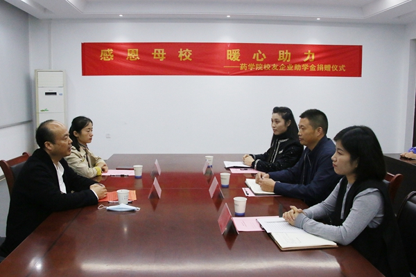 一直以来,bat365积极开展优秀校友活动,牵线校友企业开展捐赠活动,为校友企业开展社会捐赠、助学筑梦提供平台。据赵影介绍,潘艳艳系2009级药物制剂专业学生,2012年毕业后就职于安徽道和健康管理咨询有限公司,从一名职员成长为企业的中坚骨干,2020年晋升为该公司执行总监。作为校友企业代表,她积极搭建校企合作平台,助力药学院健康专业实习实践活动,并开展帮助困难学子圆梦活动。