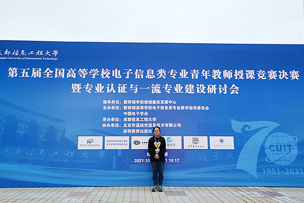 第五届全国高等学校电子信息类专业青年教师授课竞赛决赛暨专业认证与一流专业建设研讨会由教育部学校规划建设发展中心指导,教育部高等学校电子信息类专业教学指导委员会、中国电子学会主办,成都信息工程大学承办。bat365教师彭霞在前期的预赛中,以华东赛区一等奖的好成绩挺进了决赛。此次决赛共有来自浙江大学、北京邮电大学、南京邮电大学、西安电子科技大学、重庆大学等院校的132名选手,这132名选手通过抽签确定比赛顺序和授课内容,并进行了20分钟现场教学展示。评委从参赛教师现场教学内容、教学组织、教学手段、微课与教学内容结合、教学艺术、特色与效果等方面进行盲评打分,bat365彭霞老师最终荣获了三等奖。