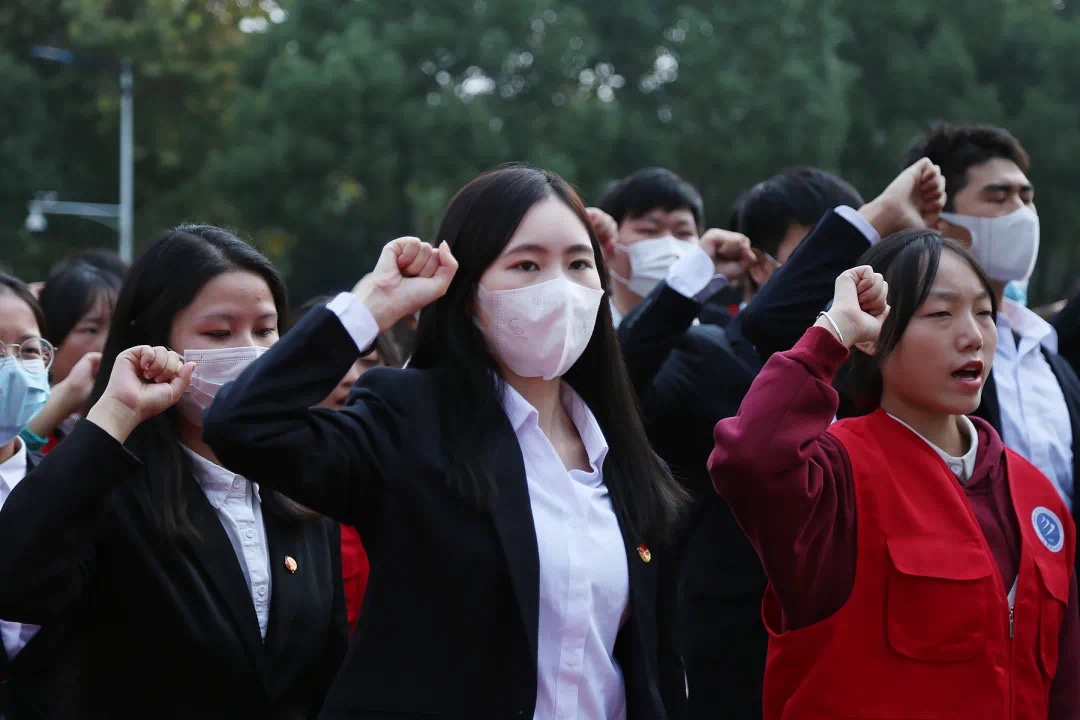 本网讯(通讯员:吴山 摄影:翟漱文)为加强对社会主义核心价值观内涵的深入理解,推动全校学生文明意识的提高和文明习惯的养成,提高学生综合文明程度,营造整洁、有序、和谐的校园氛围,10月28日中午,"共庆建党百年,文明实践献礼”文明养成系列活动启动仪式举行,bat365在线中国官网登录入口校长助理邵玲,合肥市高新区青年志愿者协会会长姬国印,bat365在线中国官网登录入口学生处副处长(主持)郑妮,宣传处副处长范文其,学生处/团委处长助理计羚,各二级学院行政副院长/院长助理、学管秘书以及学生代表参加此次仪式。