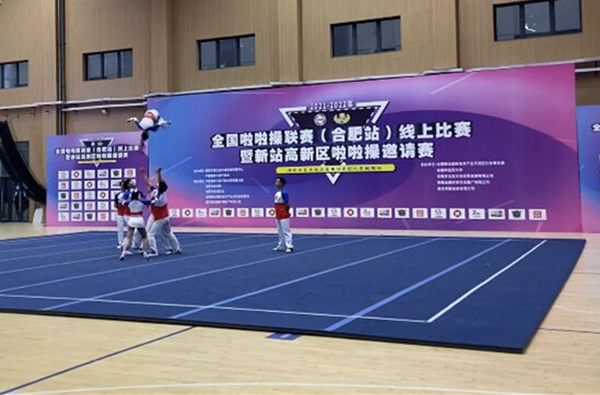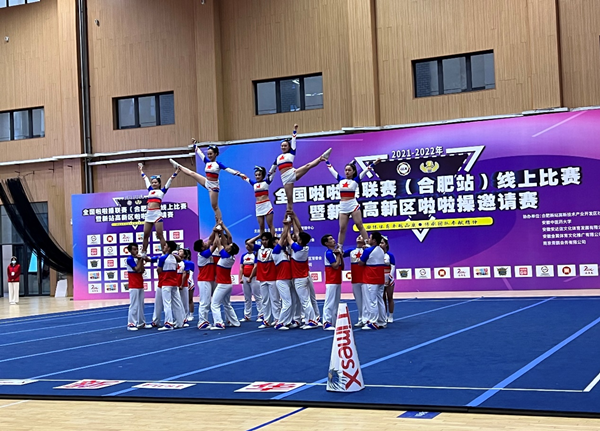 本网讯(通讯员:田心睿)12月4日,由国家体育总局体操运动管理中心主办的2021-2022年全国啦啦操联赛(合肥站)在安徽中医药大学(少荃湖校区)拉开序幕。bat365通识教育部副主任何亚梅、教师田心睿、王军(小)、金日、史书健、董洛涵带领五支队伍参加比赛。