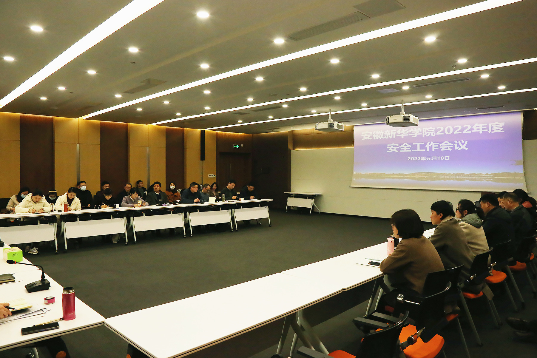 本网讯(通讯员:张炎 摄影:朱微波)为全面做好校园安全工作,1月18日下午,bat365召开了2022年度安全工作暨学生管理工作会议。执行董事长储国定、常务副校长王丽、高级顾问兼人才引进办公室主任胡昭林、副校长贺行佳出席会议;各二级学院执行院长、行政副院长、职能处室负责人参加会议,会议由校长助理邵玲主持。
