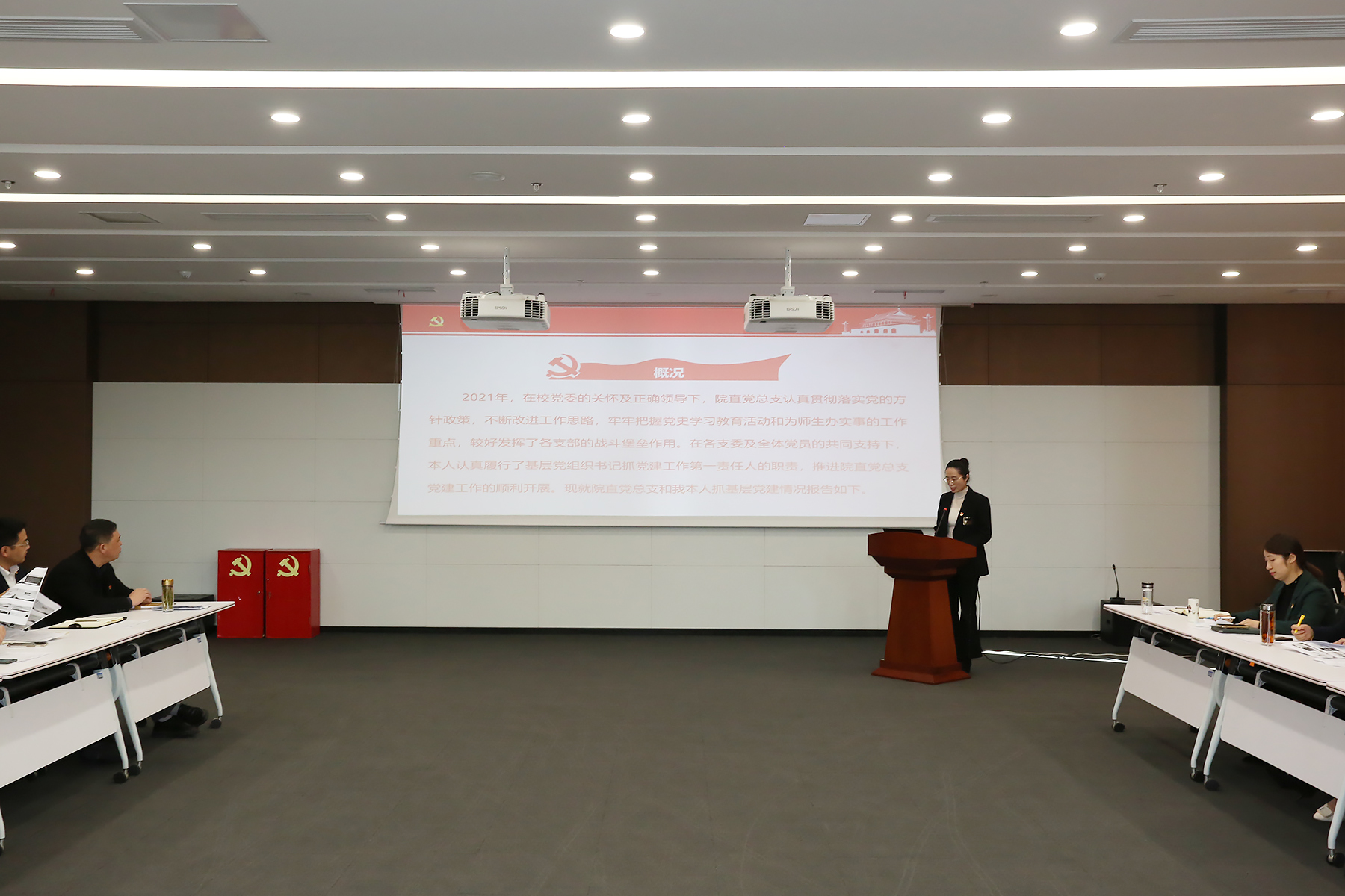 现场11个党总支和3个直属党支部书记从基层党组织建设、落实基层党建工作责任、党史学习教育开展情况等方面开展述职,全面总结过去一年来的工作成绩,深刻查摆存在的问题和原因,并结合下一步主要工作提出思路和想法。