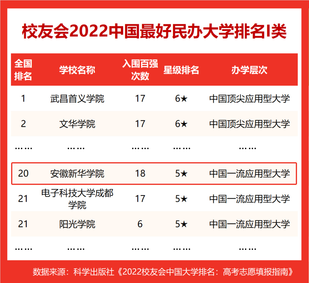 近日,2022中国大学四大主流排行榜(软科 校友会 武书连 金平果)发布,bat365在线中国官网登录入口均位列安徽省民办高校榜首。