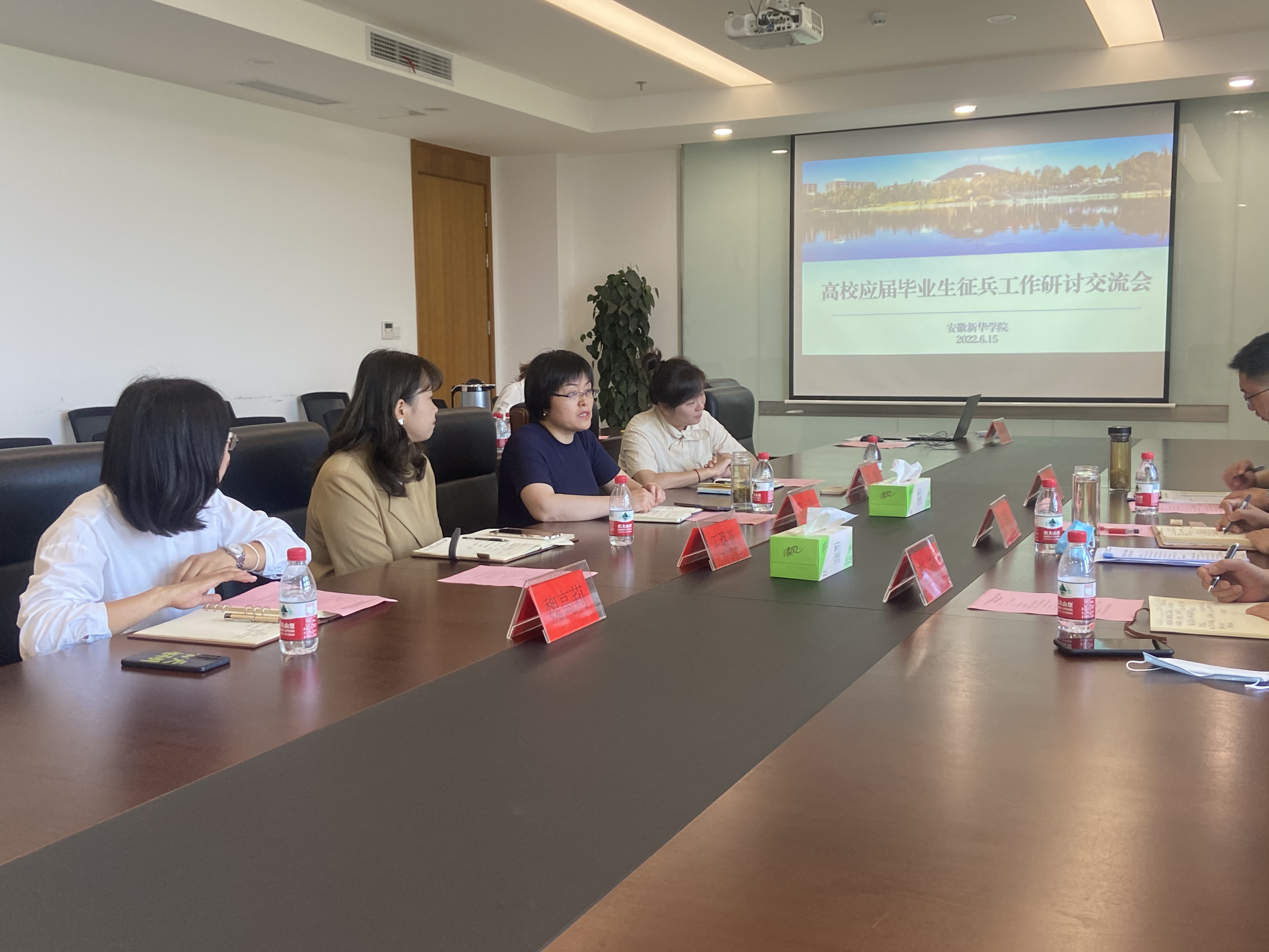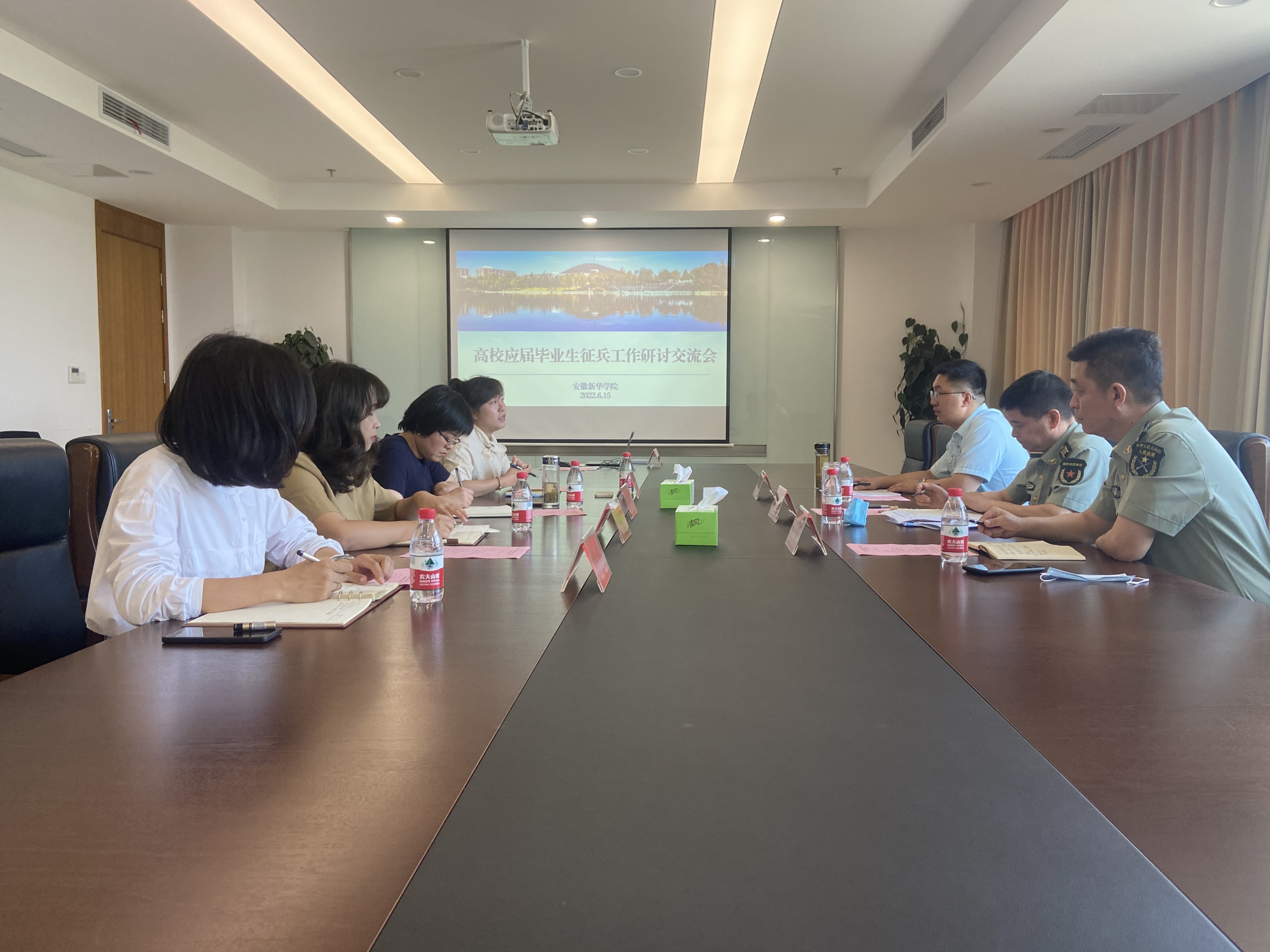 本网讯(通讯员:凌舒畅)6月15日,蜀山区人民武装部一行莅临bat365调研征兵工作。校长助理邵玲,征兵工作站站长郑妮,大数据与人工智能学院院长助理魏高莉,征兵工作站相关工作人员参加座谈会。
