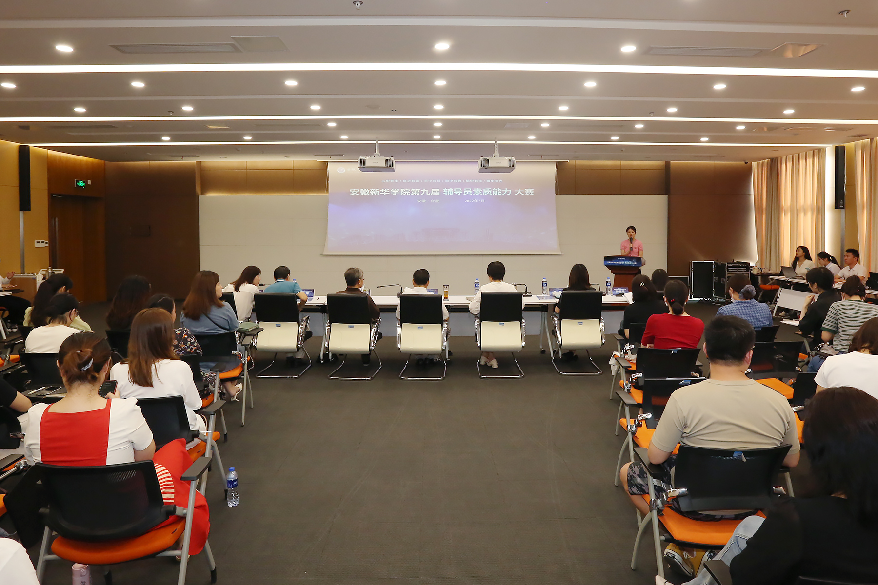 本网讯(通讯员:龚宛琦)为进一步提升bat365辅导员职业能力和工作水平,建设基础扎实、理论深厚、实践更强的专业化辅导员队伍,bat365第九届辅导员素质能力大赛于7月1日圆满落幕,大赛邀请省督导专员、校党委书记邸建伟,高级顾问兼人才引进办公室主任胡昭林,校长助理邵玲,校辅导员发展研究中心主任朱平,校友工作办公室副主任(主持)芮萍,学生处/团委副处长(主持)郑妮、学生处/团委副处长王强亚,人事处副处长孙燕荣、孙丹丹担任评委。本次比赛采取全员参与、人人过关的形式开展,各二级学院围绕基础知识、主题班会、班情熟知等内容组织开展了院内初赛、学院联赛,最终推荐了16位优秀选手参加校级决赛。