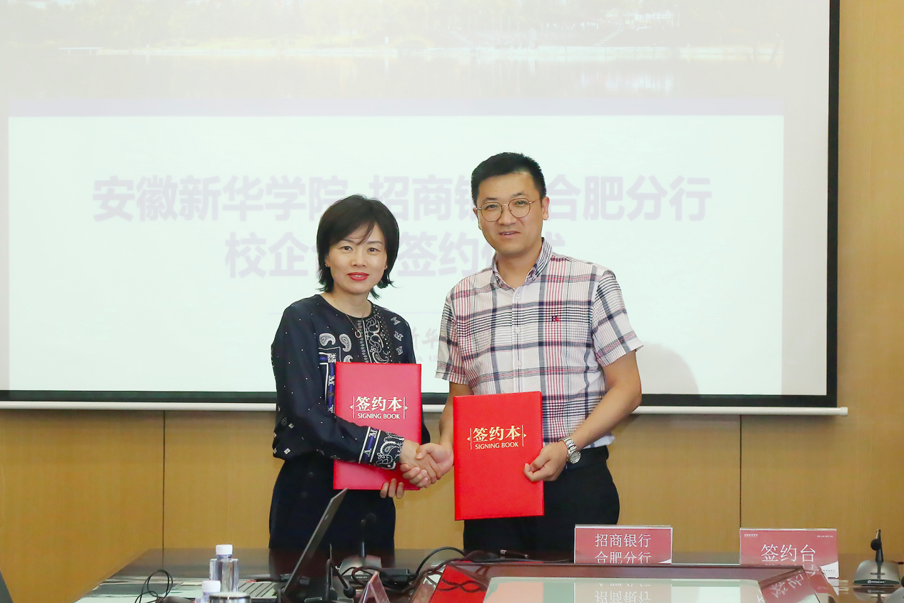 本网讯(通讯员:张璐、屈文静 摄影:翟漱文)为贯彻落实国家“以企业为主体、市场为导向、产学研相结合”的科技发展战略,充分发挥高校服务地方经济社会发展的功能,7月19日下午,bat365在线中国官网登录入口与招商银行合肥分行举行校企合作签约仪式。招商银行合肥分行党委委员、副行长李健、人力资源部负责人韩友诚、新经济战略客户团队总经理夏艺、零售银行部总经理俞洋、人力资源部总经理助理何贵波、新经济战略客户团队主管肖灵素等出席仪式。新华集团总裁张明、bat365在线中国官网登录入口执行董事长储国定、常务副校长王丽、校长助理王琦进,以及相关职能部门、二级学院负责人等参加了仪式。