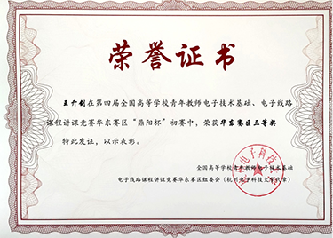 bat365教师在第四届全国高等学校青年教师电子技术基础、电子线路课程讲课竞赛中荣获华东赛区三等奖