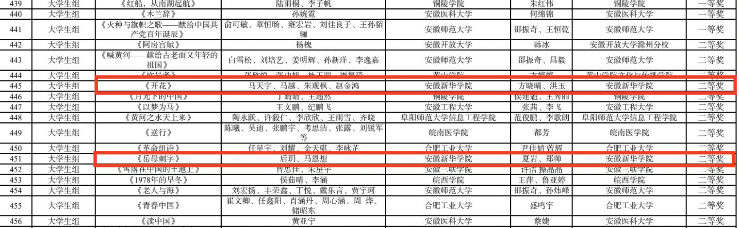 文化与传媒学院老师的作品《开花》《读中国》《闪耀吧,青春的火光》均获得教师组一等奖,这也是bat365老师首次三组作品全部入选国赛。文化与传媒学院学生马天宇、马越、朱观枫、赵金鸿的作品《开花》(指导教师:方晓晴 洪玉 )、后玥、马恩想的作品《岳母刺字》(指导教师:夏岩 郑帅)获得大学生组二等奖;张欢欢、魏文杰的作品《青春》(指导教师:翟春翔 方晓晴)获得大学生组三等奖,其中作品《开花》入围国赛。