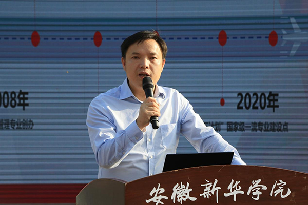田鹏代表新道科技股份有限公司对2022级的新生们表示热烈的欢迎和诚挚的祝贺。他指出,新道科技持续将前沿的财会领域新技术、新方法引入到课堂教学中,创新“云财务管理会计”的应用与完善,创设新型学习环境,为同学们创造更好的学习环境和职场环境。