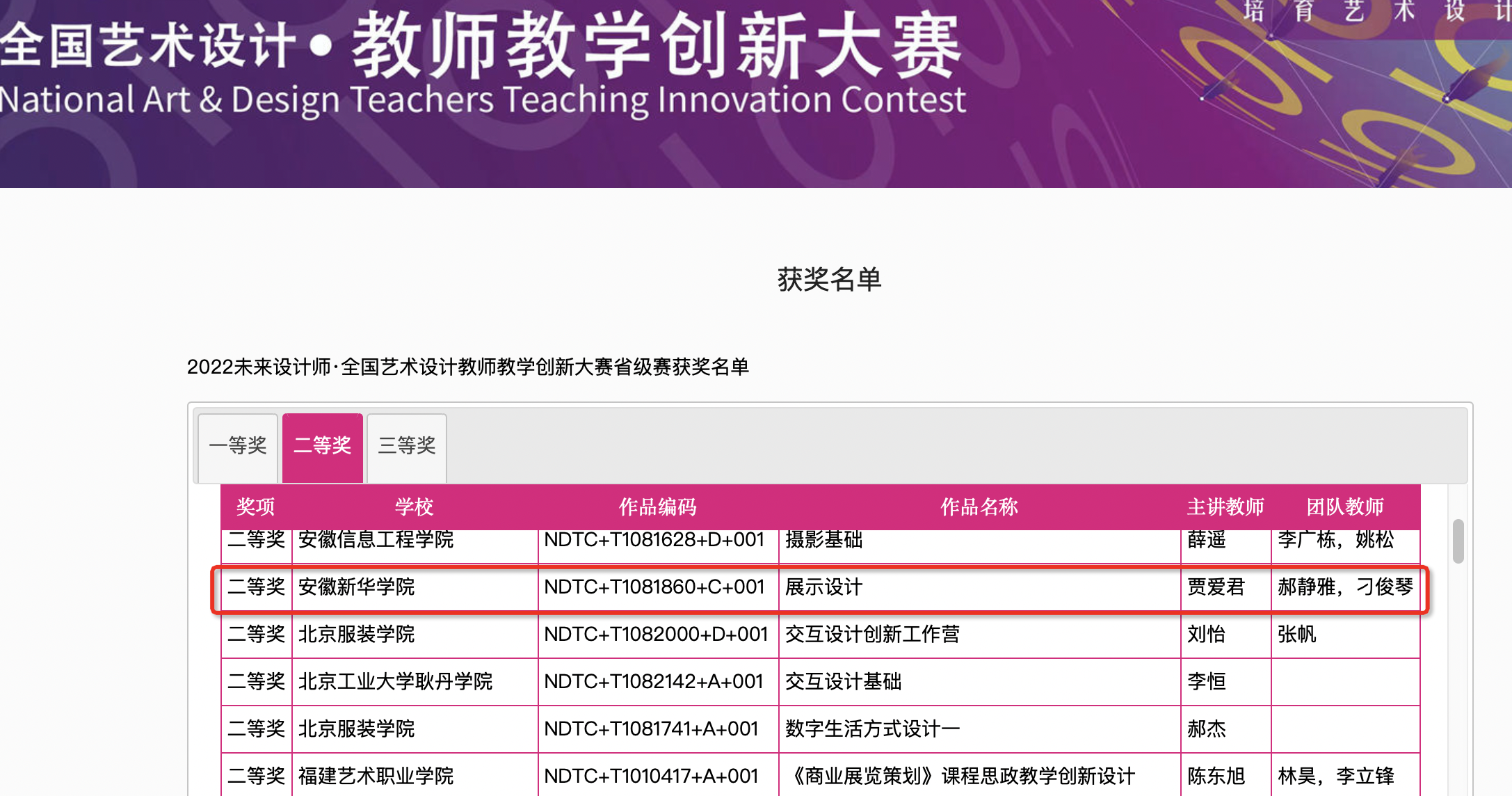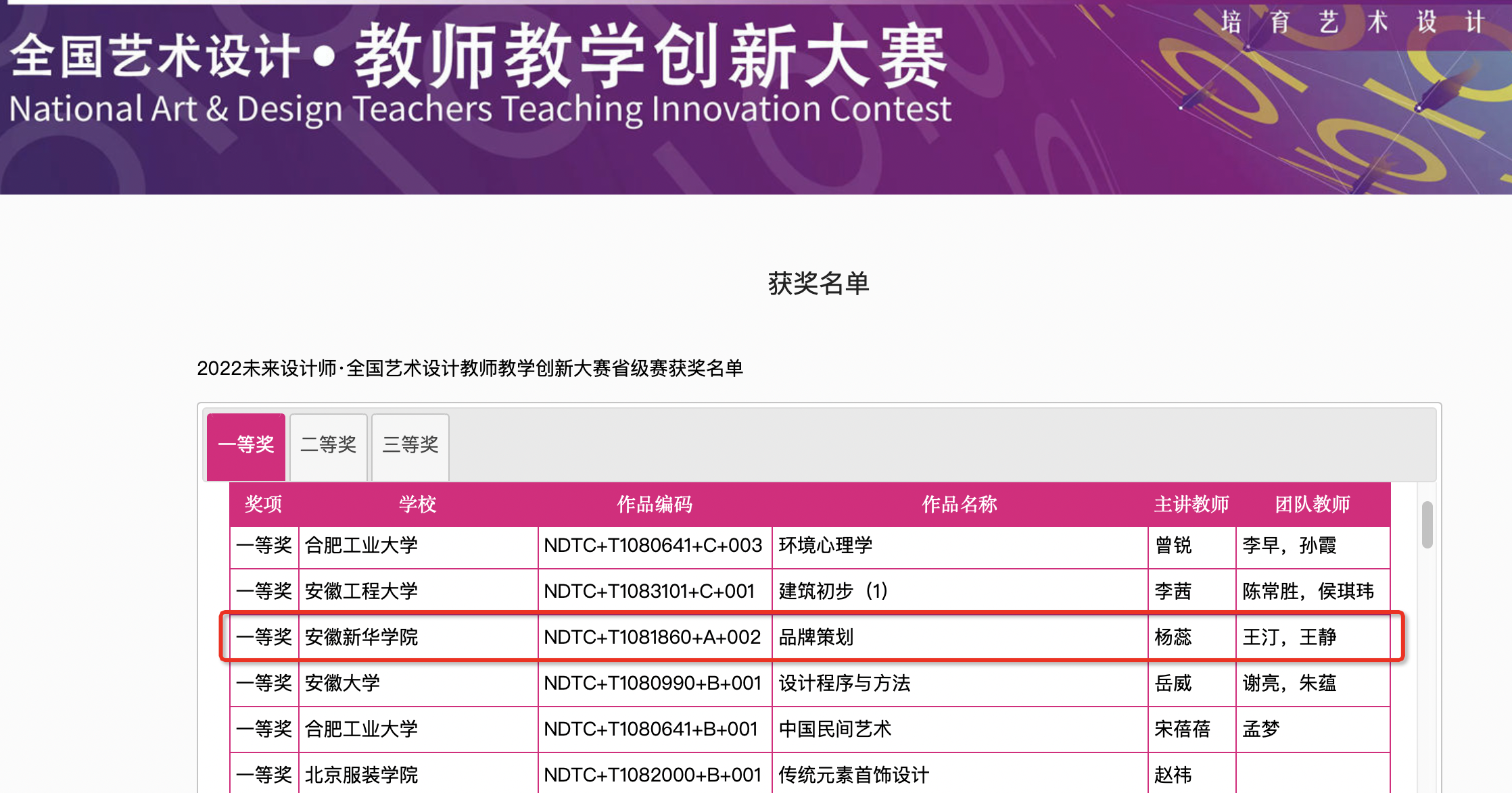 “未来设计师·全国艺术设计教师教学创新大赛”由工业和信息化部人才交流中心主办,全国90%的985一流大学和95%的知名设计专业院校参赛。赛事每年举办一届,具有广泛影响力,入选中国高等教育学会发布的《全国普通高校教师教学竞赛项目》,是各高校参与竞赛排名的重要赛事之一,“学习强国”学习平台开辟专区展示教师参赛优秀作品。