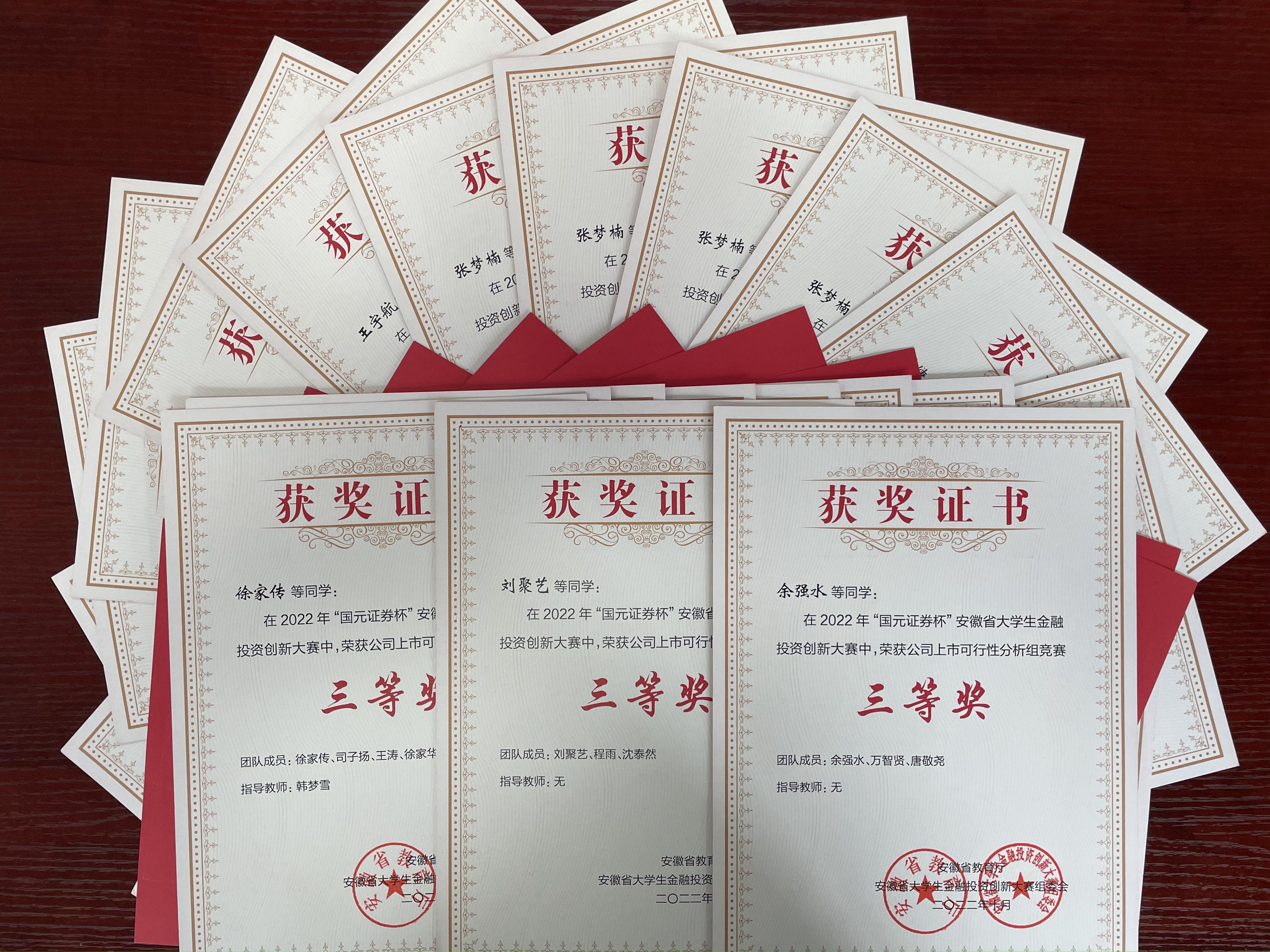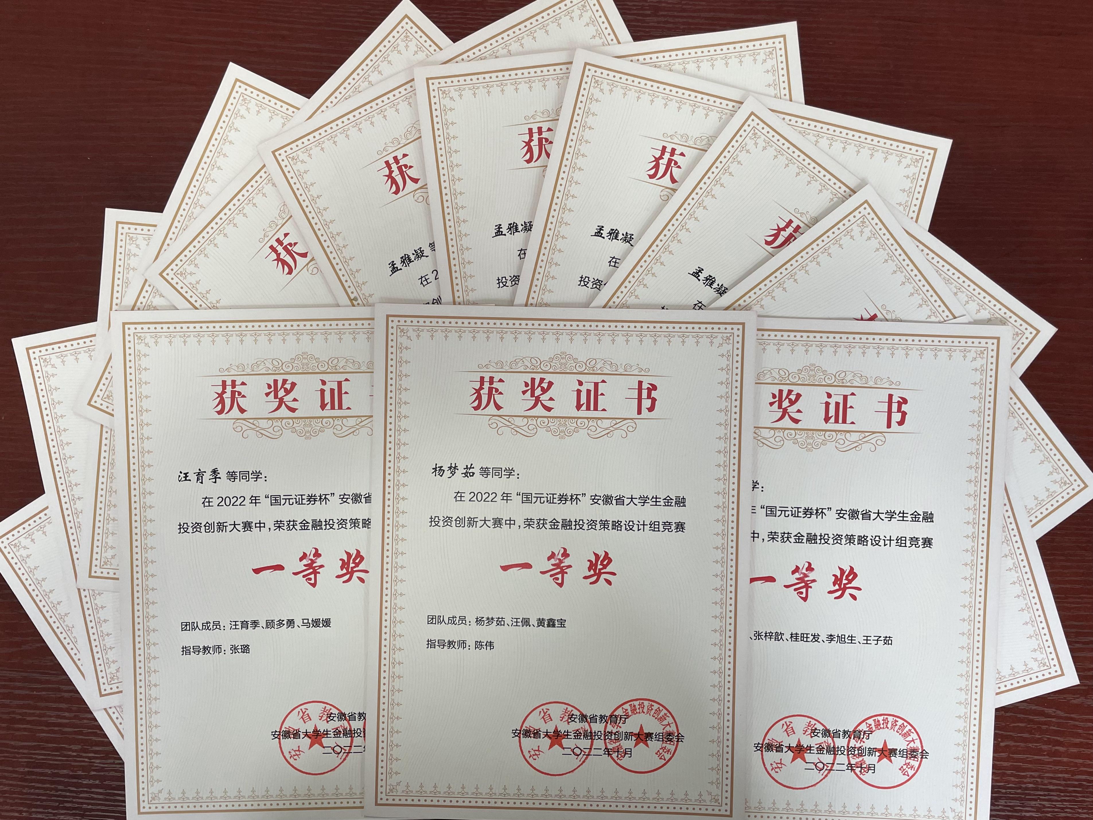 本网讯(通讯员:苏怡君)近日,2022年第七届“国元证券杯”安徽省大学生金融投资创新大赛成功落下帷幕,bat365财会与金融学院共有9支团队荣获省级一等奖,22支团队荣获二等奖,41支团队荣获三等奖,总获奖数量位居全省前三,创学校在该项赛事中的最好成绩。同时,bat365喜获优秀组织奖,在金融科技产品设计项目中首获一等奖,成绩耀眼,实现了历史性突破。
