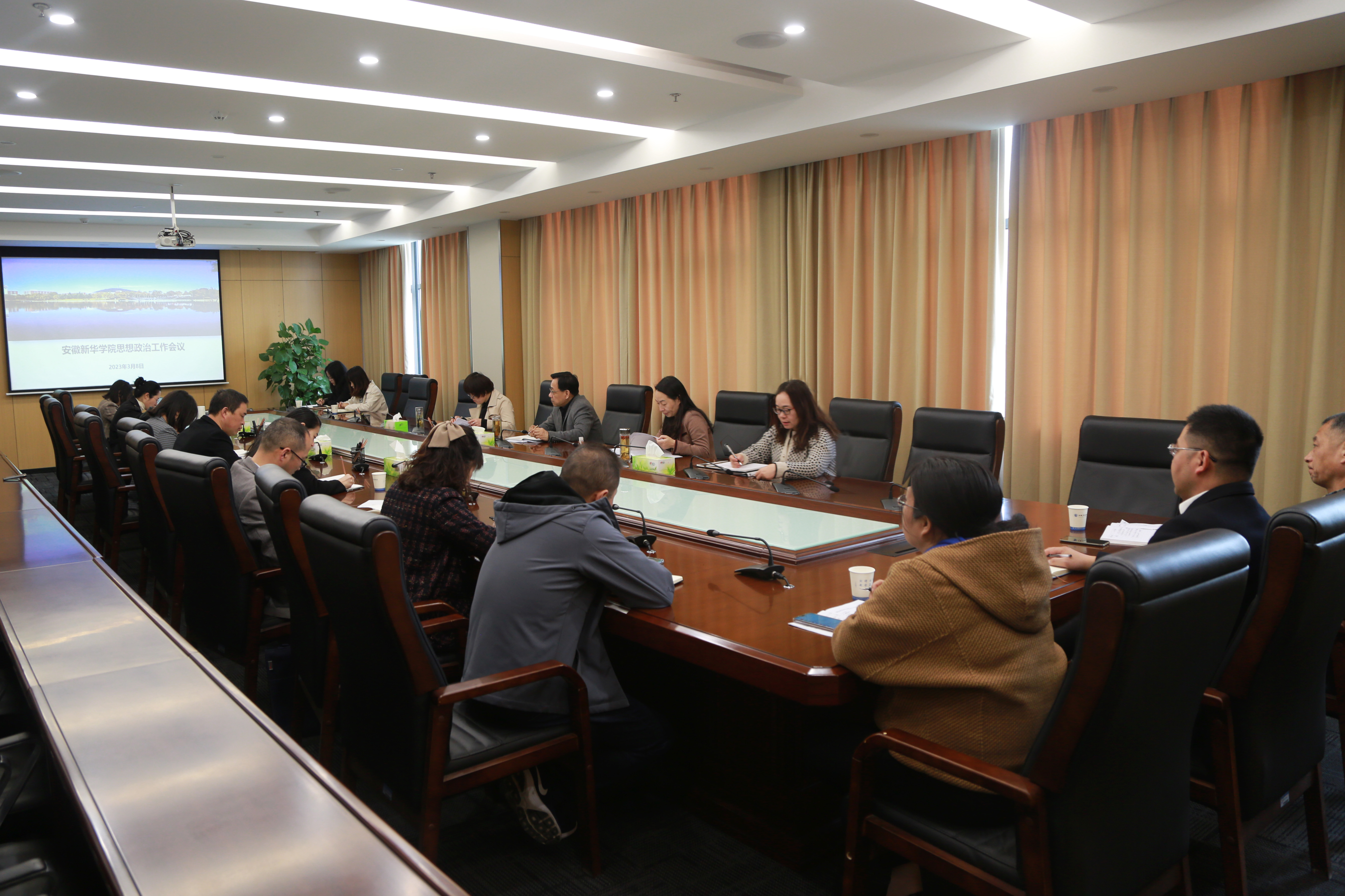最后邸建伟传达教育厅思政工作会议精神并作相关工作部署。他强调,一要增强理论武装,保持政治定力。各单位各部门要按照学校党委统一部署抓好贯彻落实,创新开展以党的二十大精神为主题的宣传教育活动,持续推动党的二十大精神入脑入心、落地生根。坚持学用结合,将党的二十大精神及时准确融入思政课与课程思政教学内容,不断把学习宣传贯彻党的二十大精神入引向深,集中精力开展好“开学第一课”,讲好“大思政课”。二要加强师德师风,聚焦立德树人。不断深化教师队伍建设,造就政治素质过硬、业务能力精湛、育人水平高超的高素质教师队伍。引导广大教师坚定“为党育人、为国育才”的初心使命。三要强化组织建设,夯实党建基础。不断加强基层党组织建设,完善组织架构体系,推动高校党建与教育、科研发展深度融合,充分利用党建创新成果引领学校高质量发展。