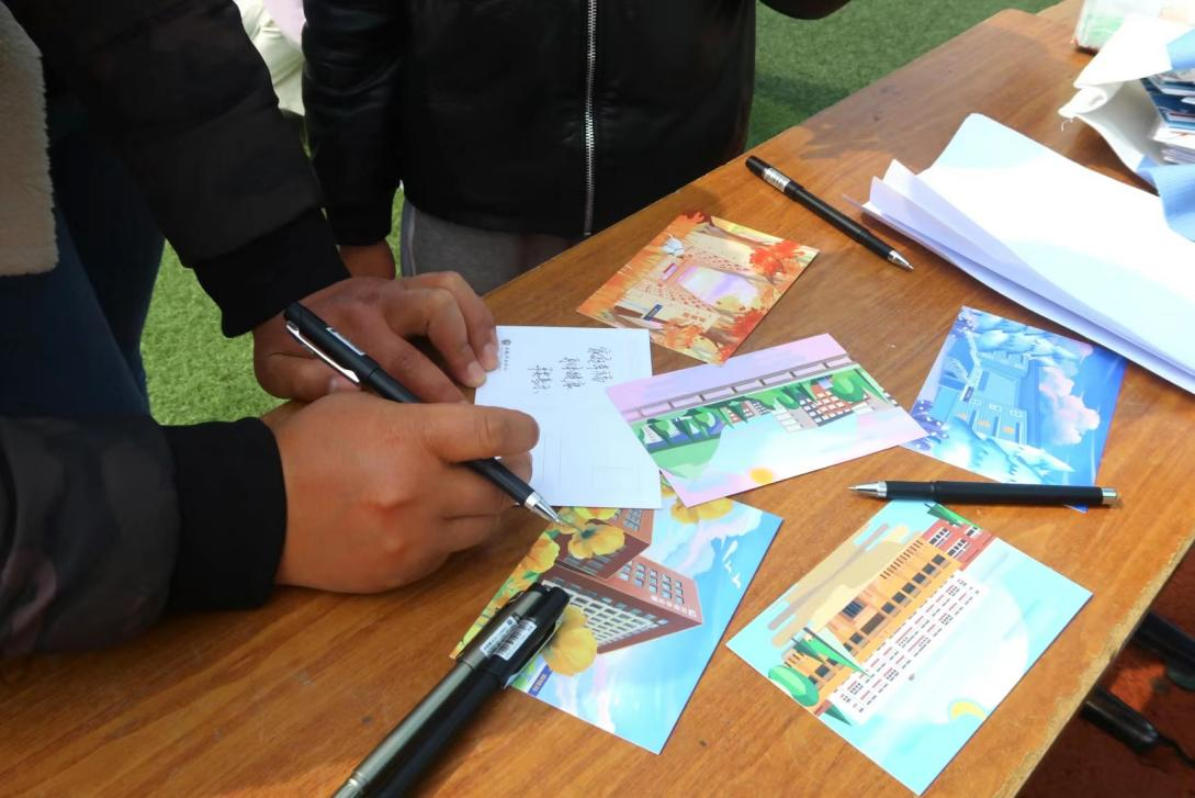 当日13时许,校友陆续来到祥云体育场入口处进行签到,领取签名贴及登山物资包。在隐藏环节中,学校为到场校友准备了新华园特色明信片,校友们纷纷写下对自己的期望、对学弟学妹的寄语及对母校的祝福等等,由学生志愿者记录下这一温馨时刻。