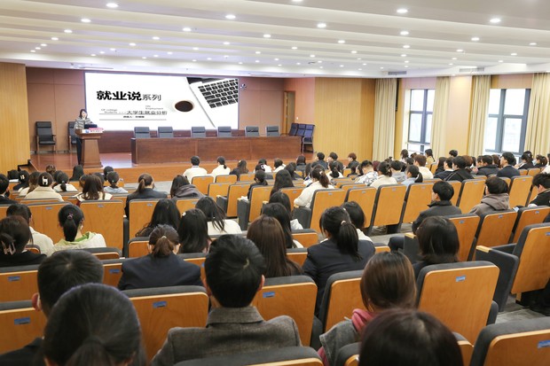 在招聘会开展的同时,由安徽省“启明星”就业指导专家孙珊珊带来的《就业说系列》讲座在多媒体报告厅举行。孙老师围绕当前国家就业形势、高校毕业生就业现状、毕业季求职目标及路径设计等方面进行了交流,帮助同学们解决在求职中遇到的困惑,精彩的报告赢得了全场同学热烈的掌声。