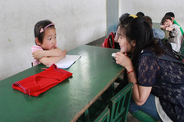 孙胜胜是志愿者行列中的成员之一。对于他来说,能看到孩子们的笑脸是最开心的事。“我们都很喜欢孙哥哥,他每次来,都会组织我们玩游戏,做广播体操,错了也不会骂我们,会很耐心的让我们重新做。”四年级的芮文俊这样描述他。孙胜胜觉得,得到这里的老师和学生的认可很重要,为此付出再多努力都是值得的。