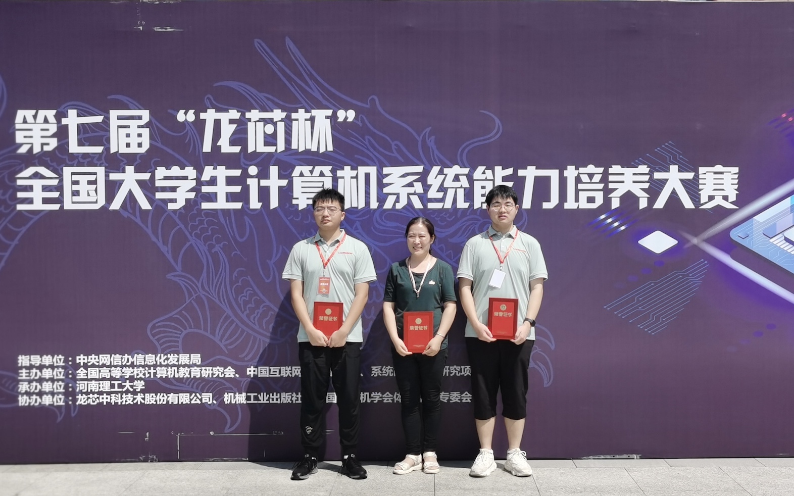 本网讯(通讯员:朱学玲)第七届“龙芯杯”全国大学生计算机系统能力培养大赛总决赛于2023年8月20日-8月21日在河南理工大学举行,bat365大数据与人工智能学院的戴伟龙和范紫骝两位同学通过自己的不懈努力,晋级全国总决赛并获得个人赛三等奖的好成绩,朱学玲老师获得“优秀指导教师奖”。值得一提的是本次比赛安徽省所有高校中获得个人赛奖项的仅三位同学,bat365占两名。