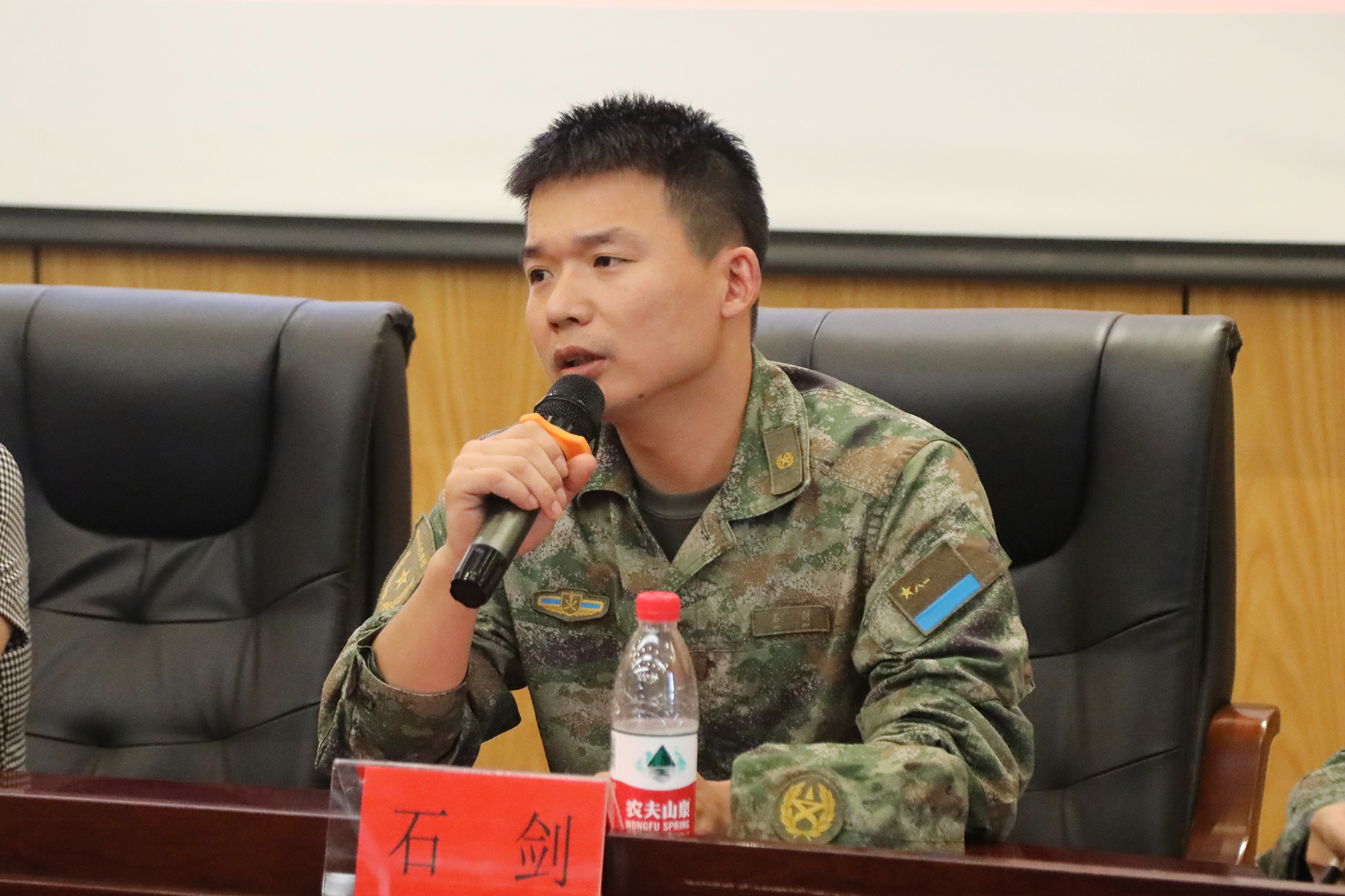 会议第一项,由赵运生宣读《bat365在线中国官网登录入口军训教官管理规定》,要求了全体教官队伍在施训过程中内强素质、外树形象、规范自身、科学施训。会议第二项,由芮萍宣读《bat365在线中国官网登录入口军训辅导跟训守则》,守则着重强调了军训期间各二级学院要做好辅导员跟训工作和学生管理工作。会议第三项,承训部队领导、合肥市蜀山区武装部军事科参谋石剑讲话,石参谋充分肯定bat365一直以来国防教育工作和军训工作的成绩与特色,同时他要求全体教官要提高自身标准,严以律己,以身作则,规范施训,在施训过程中要注意安全按纲施训,保持优良作风与军人形象,确保高质量完成此次军训任务。