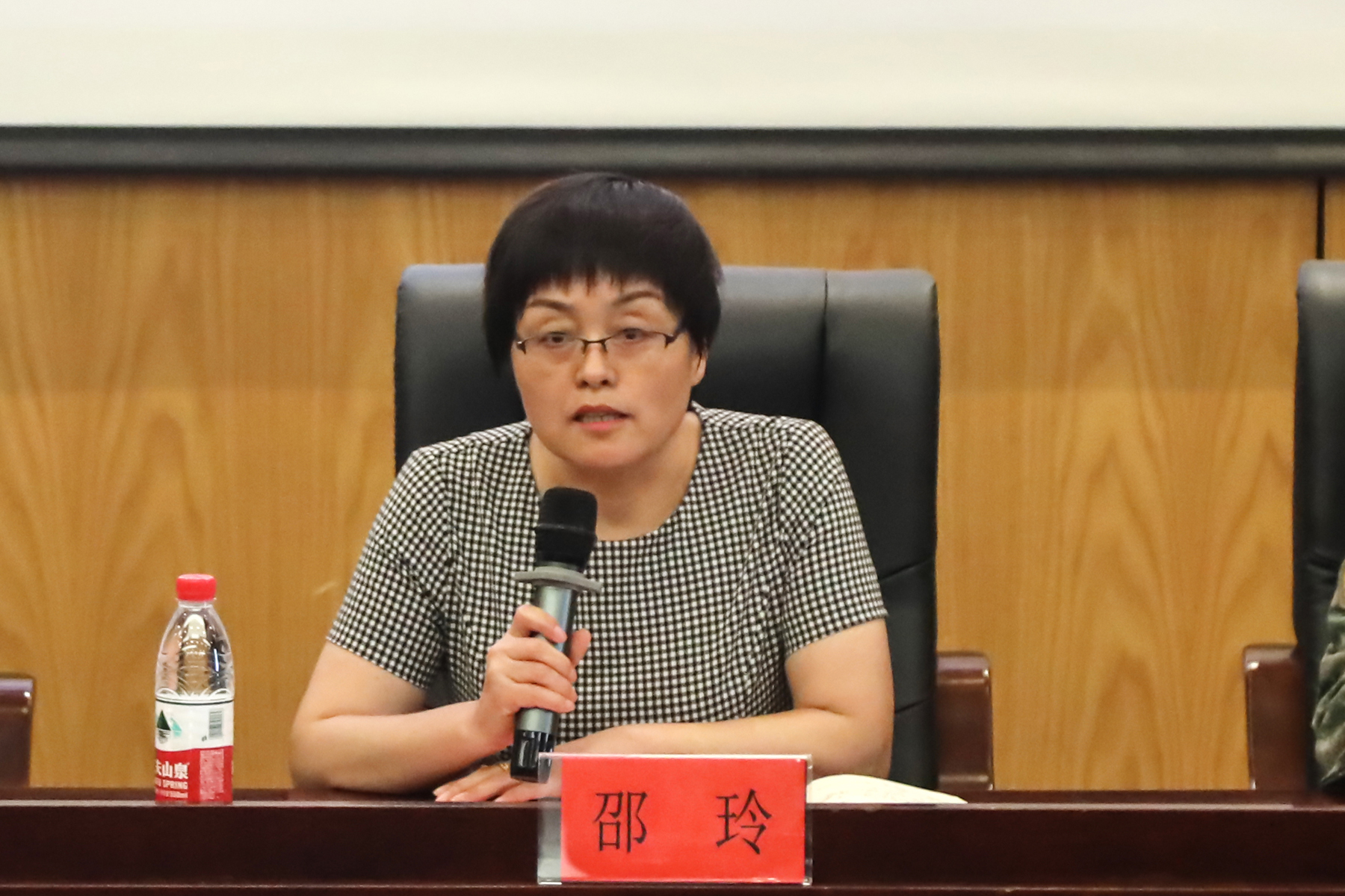 最后,邵玲做指导讲话,她强调了军训工作对于学生个人成长、国家民族发展的重要意义,要求全体参与军训工作人员牢固树立安全意识、责任意识和协作意识;能够根据新形势、新学情做好军训工作的预判、调整与应急处理,要将安全教育与思想政治教育融入军训全过程。