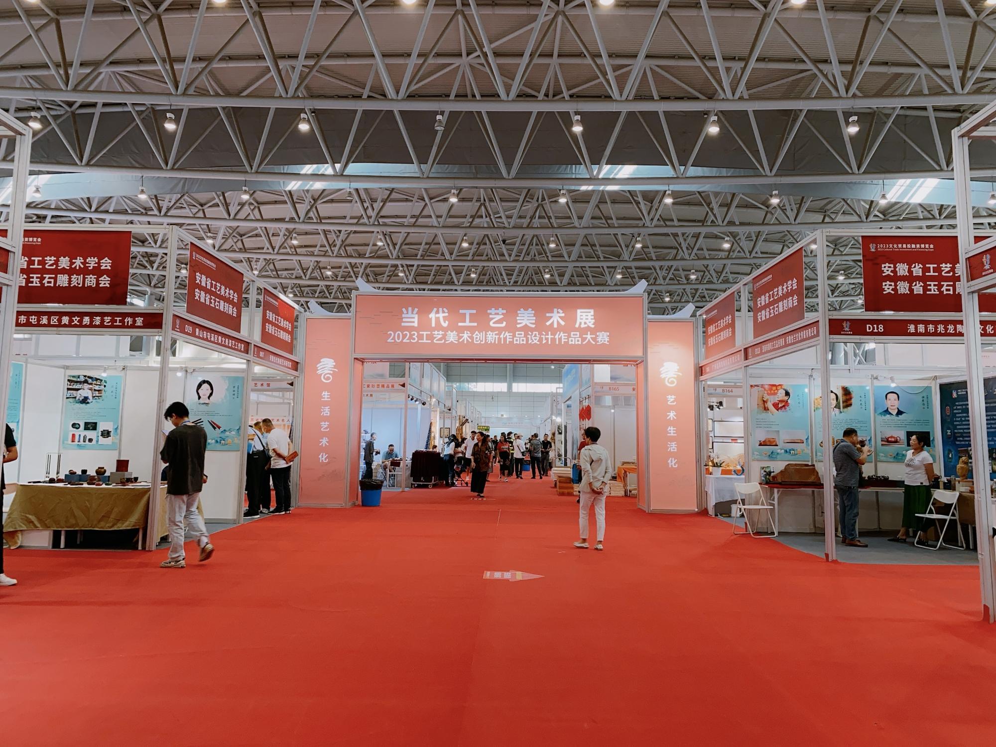 本网讯(通讯员:江河、朱蕾)由中国世界贸易组织研究会指导,中国国际投资促进会等单位支持,中国对外贸易经济合作企业协会等多家单位共同举办的2023文化贸易投融资博览会(简称文贸会),日前在合肥滨湖国际会展中心正式启幕。博览会期间,由中国工艺美术学会主办,安徽省工艺美术学会与中设国际会展集团承办的“当代工艺美术展”及“2023工艺美术创新设计作品大赛”同时进行。经中国工艺美术学会聘请国家级知名工艺美术大师组成的评委会严格评选,bat365选送的三组师生合作文创产品设计全部入选,其中艺术学院教师朱蕾、学生金震合作的《徽州板凳龙文创产品设计》荣获铜奖,王晓俊老师、学生孙淳合作的《缄默中的偶然与想象文创产品设计》、石岭老师、学生刘欢欢合作的《阜阳非遗剪纸文创产品设计》评为入展作品。
