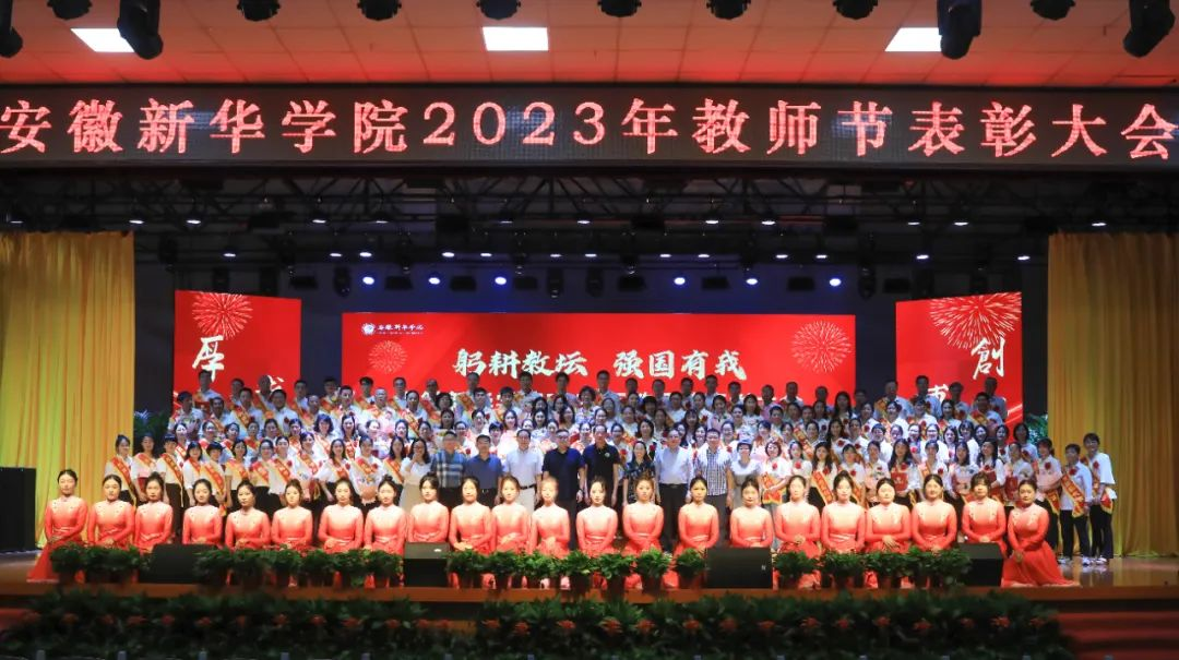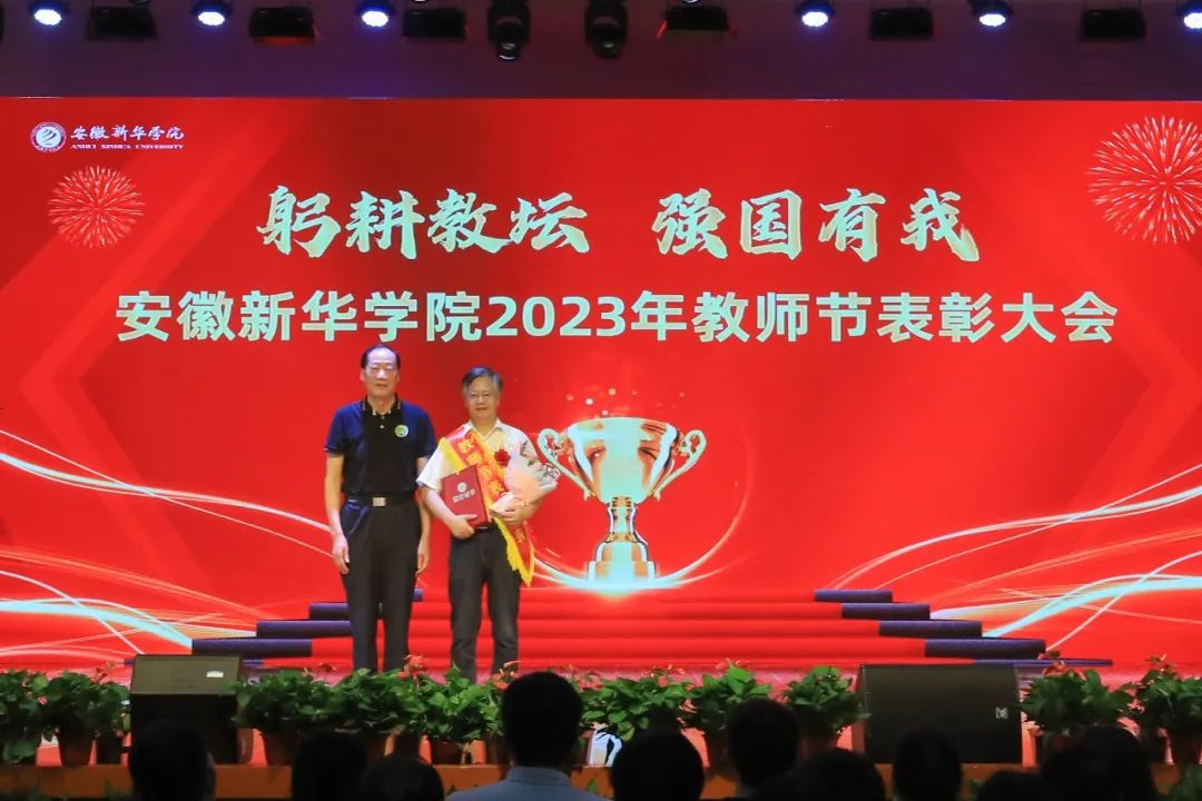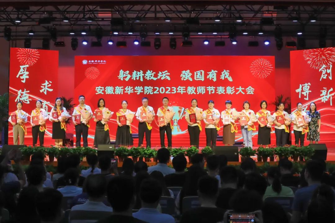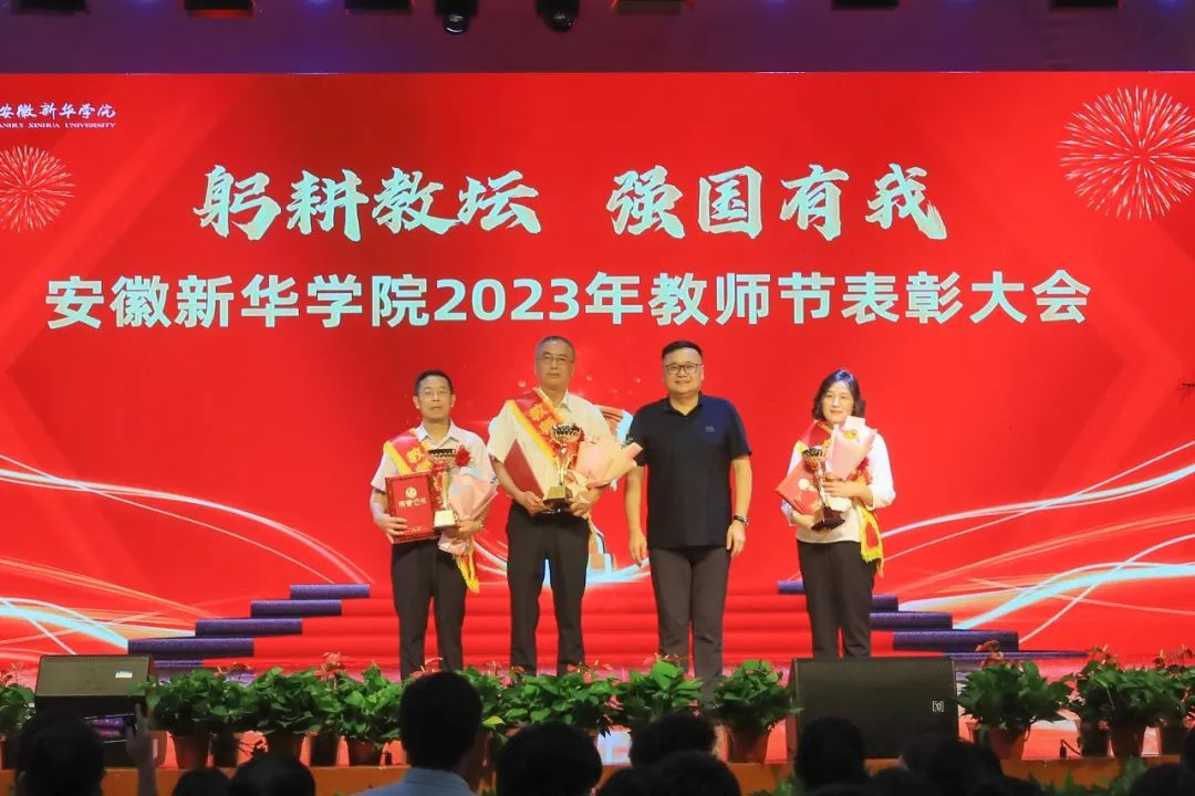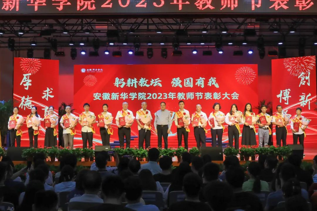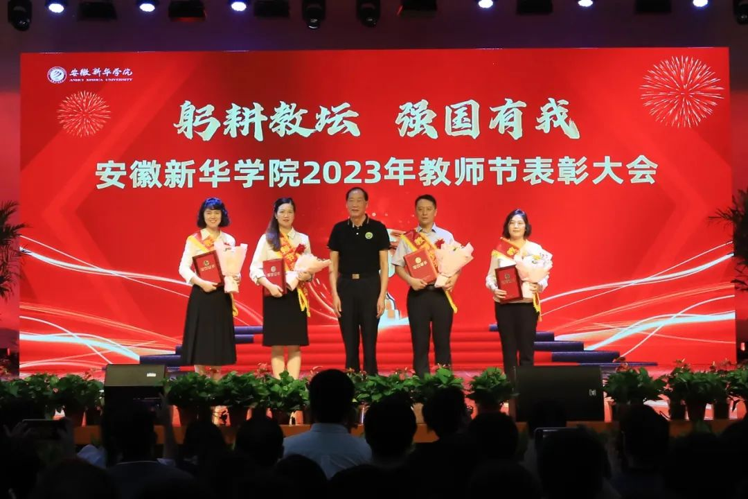 第二篇章表彰了校级“最美辅导员”、2022年度安徽省“最美高校辅导员”、2023年度省级“心理干预先进个人”“服务之星”“华园新星”、校级“师德先进个人”、校级“先进教育工作者”、校级“教书育人楷模”、校级“科研标兵”。学生代表为获奖教师送上鲜花,校领导为获奖老师颁奖,送上节日的祝福。