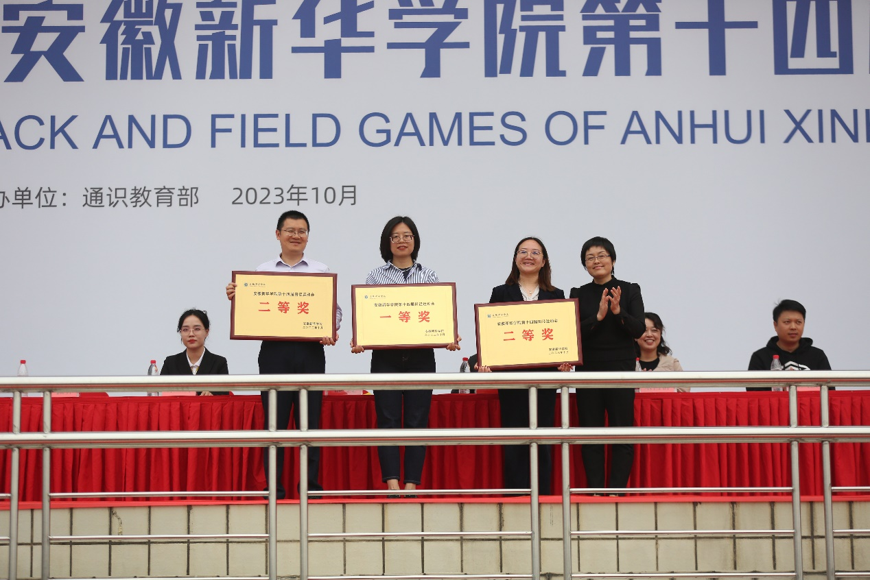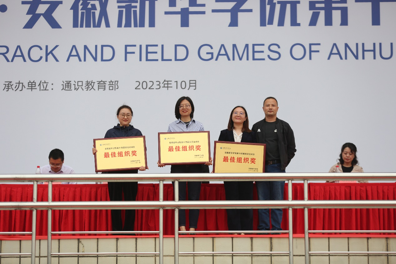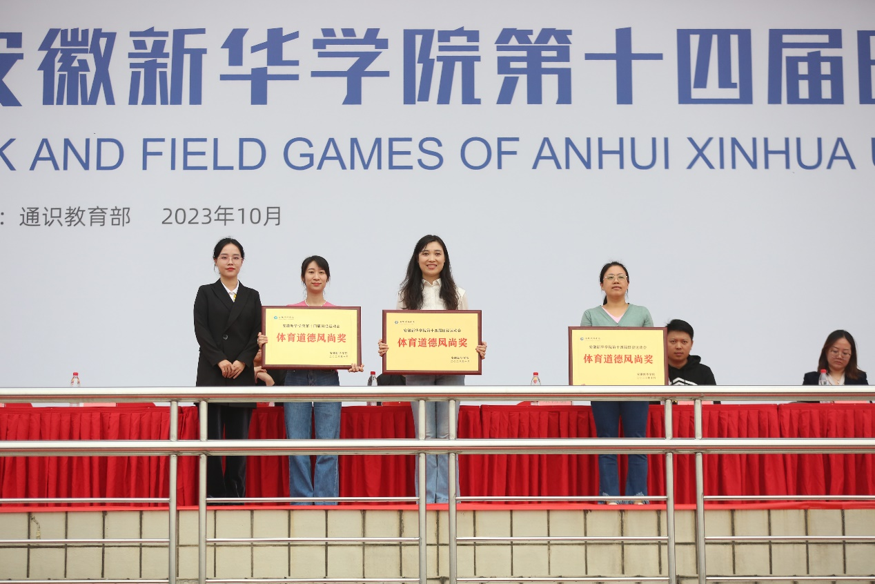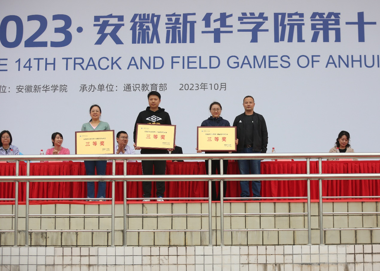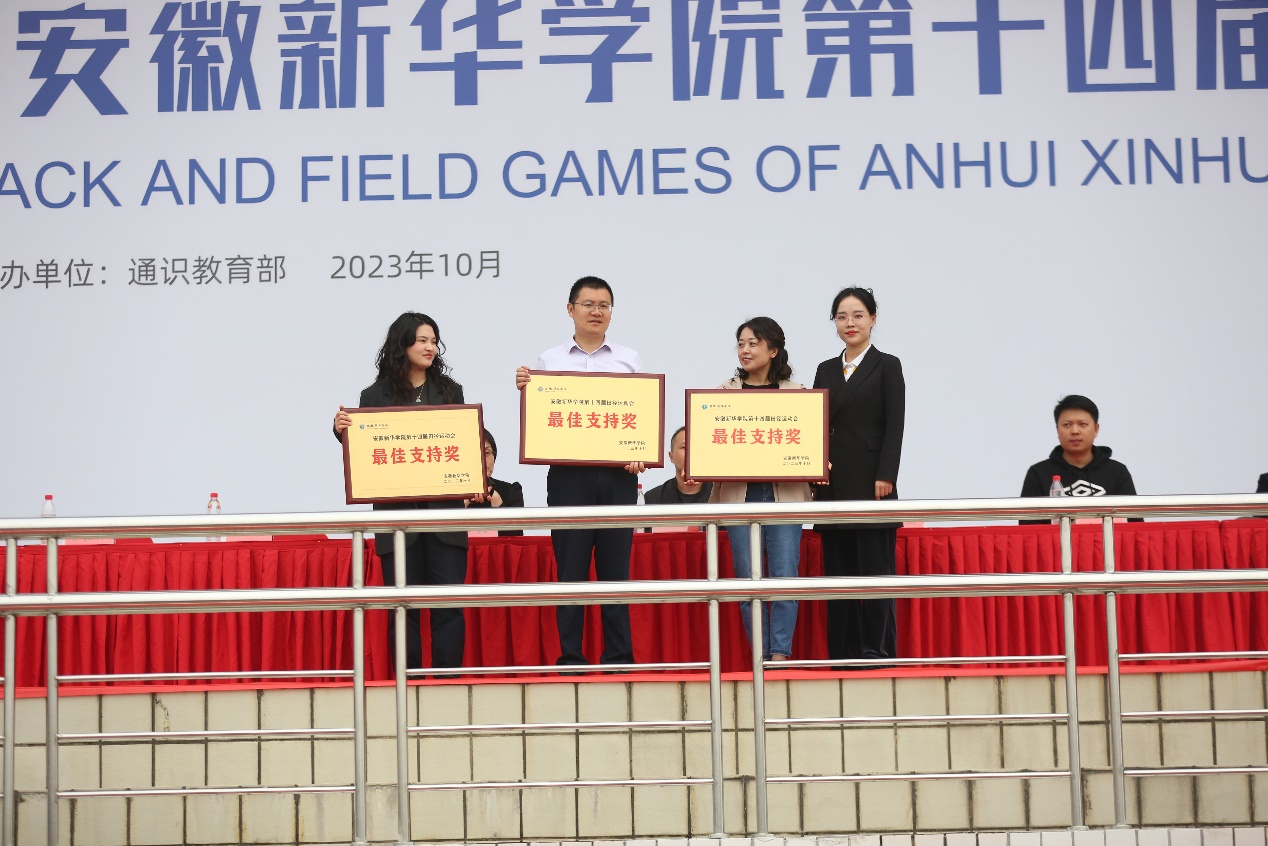 闭幕式上,学生处/团委副处长计羚为获得 “体育道德风尚奖”和“最佳支持奖”的单位颁奖。药学院、商学院、电子工程学院/智能制造学院获得“体育道德风尚奖”;科技学院/继续教育学院、艺术学院、文化与传媒学院获得“最佳支持奖”。