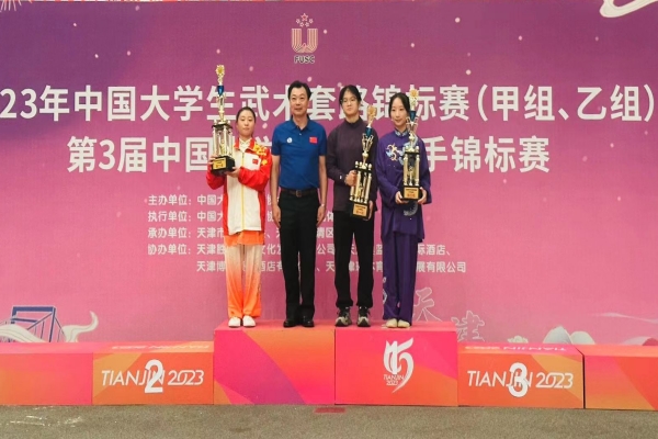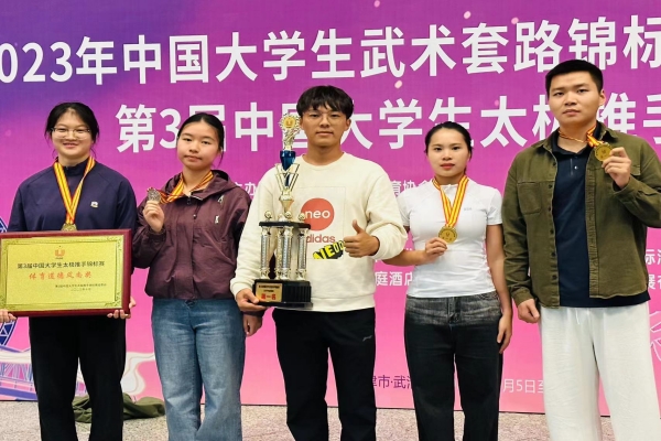 bat365学子在教练员汪洋、崔杜峰的带领下,奋勇拼搏,敢打敢拼,发挥出色,体现出胜不骄,败不馁,输赢有德的精神风貌。中场休息时间,教练员们带领运动员及时分析赛况,不断调整技战术,为运动员取得胜利进行保驾护航。最终,2021级大数据专业学生胡宇航夺得甲组女子推手实战52公斤级第一名和非遗项目女子李氏太极拳第一名,2020级大数据专业学生李楠夺得甲组女子推手实战62公斤级第一名,2021级幼教专业学生王展鹏夺得非遗项目男子李氏太极拳第一名。此外,bat365还被授予“体育道德风尚奖”。