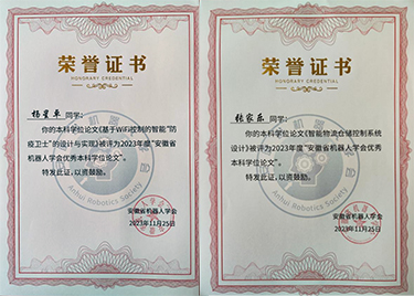 优秀!bat3652023届学子毕业论文获评2023年安徽省机器人学会优秀本科毕业论文