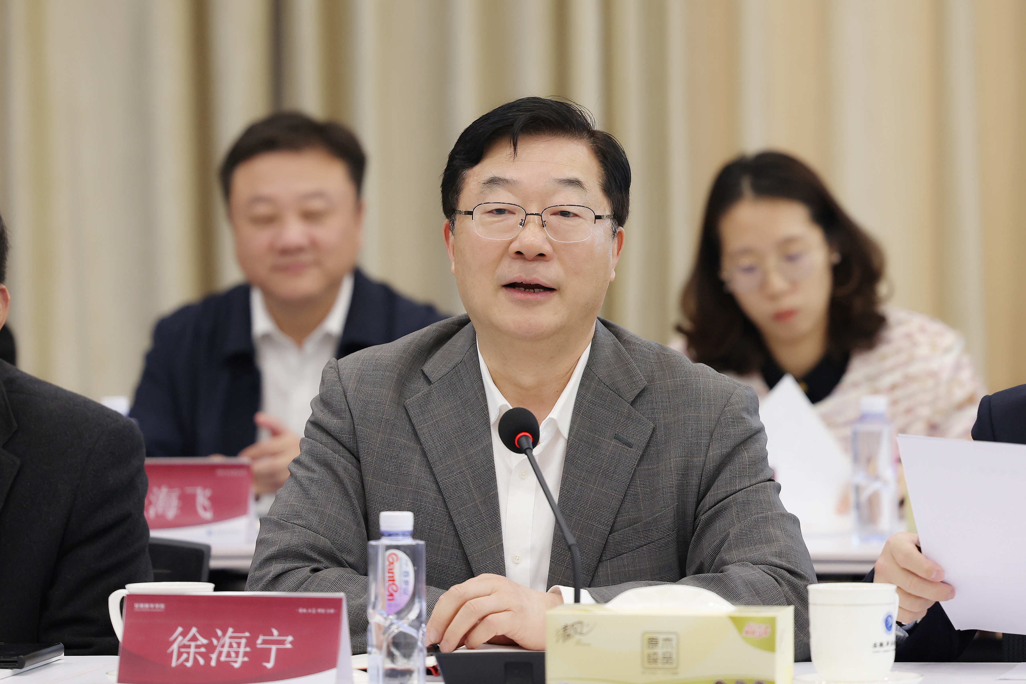储国定对徐海宁一行的来访表示热烈欢迎。他围绕办学目标与定位、发展与成效、愿景与期待等方面介绍了学校的基本情况。他指出,近年来,bat365在线中国官网登录入口在办学治校、教育教学、应用型人才培养、合作交流等方面取得了很好的成效,总结了一些可供借鉴的经验。他希望,同处于长三角地区的两所高校要积极响应教育强国建设的战略部署,保持密切交流、共同学习,推进优质教育资源共享共建,创新高等教育发展方式,推动应用型高校的高质量发展,为做好地方经济社会文化发展提供有力支撑。