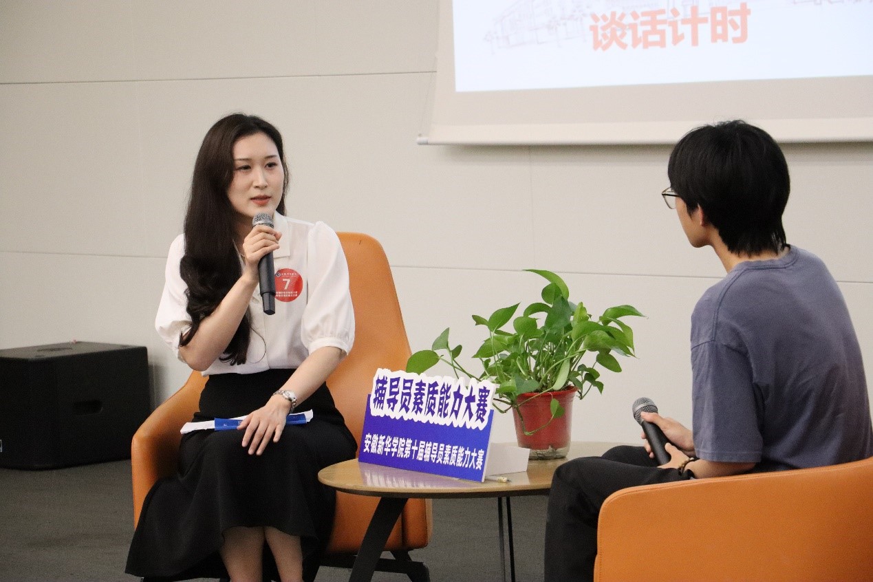 大赛决赛分为案例研讨和谈心谈话两个环节。在案例研讨环节,选手需展现运用理论分析、研判问题和解决问题的能力,比赛以“我提问,你回答”的形式进行,选手们共同围绕案例辨析原因、研讨对策,总结规律。在谈心谈话环节,选手与现场学生配合,再现案例情景,针对大学生日常学习和生活中的普遍问题,向辅导员提出“难题”,选手们在谈话中聚焦问题、寻求突破,这一环节充分考察了辅导员对学生特征和成长规律的了解程度,以及对学生的教育引导能力和解决实际问题的能力。