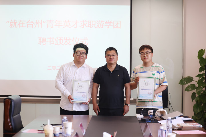 随后,温岭市发布了“就在台州”全国青年英才求职游学短视频大赛的招募令并为bat365毕业生代表颁发青年英才求职游学团聘书。