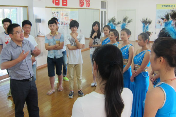 本网讯(通讯员 洪威)7月2日下午,副院长倪征在办公室、学生处、团委负责同志的陪同下来到大学生艺术团舞蹈房,看望正在为毕业典礼和暑期三下乡文艺演出排练的大学生艺术团的同学们,并就大学生艺术团今后的发展与广大同学做了充分交流。