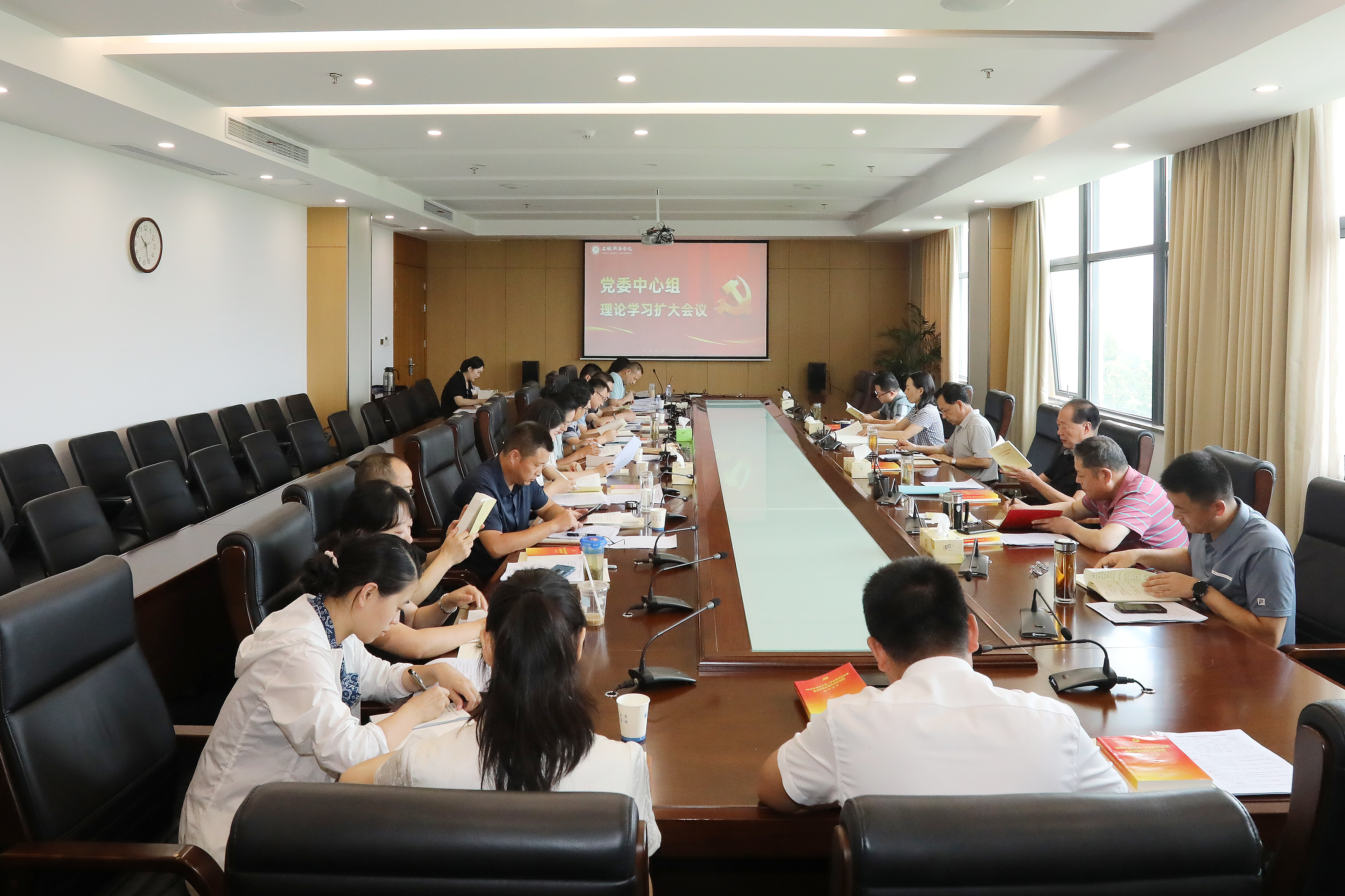 会上,与会人员集体学习了《习近平法治思想学习纲要》部分内容,《中共中央 国务院关于弘扬教育家精神加强新时代高素质专业化教师队伍建设的意见》,教育部党组书记、部长怀进鹏关于深化教育科技人才体制机制一体改革的讲话精神以及《安徽省教工委关于学习宣传党的二十届三中全会精神的通知》,怀进鹏在《学习时报》上的撰文《深化教育综合改革 为加快建设教育强国提供强大动力》,《〈中共中央关于进一步全面深化改革、推进中国式现代化的决定〉辅导读本》部分内容,《习近平关于全面依法治国论述摘编》部分内容。与会人员视频学习了《高举改革开放旗帜》第一集“开辟中国式现代化广阔前景”。