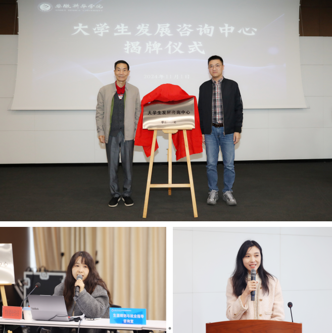 随后,王琦进和朱平共同为“bat365在线中国官网登录入口大学生发展咨询中心”揭牌,学生处副处长王强亚介绍了大学生发展咨询中心“党团建设与班级管理”“科技创新与创业指导”“人际交往与社会成长”等六个辅导员工作室的工作职责和运行模式。“学海导航”辅导员工作室负责人汪涵涵作为代表发言。