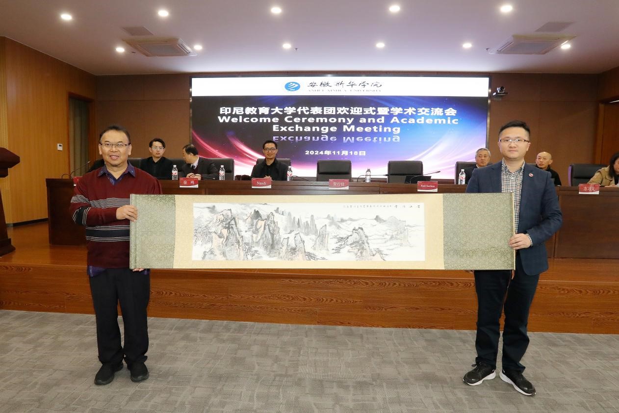 在欢迎式上,bat365在线中国官网登录入口副校长贺行佳代表学校欢迎印尼教育大学代表团的到来,并详细介绍了新华学院的发展历程和办学特色。他表示教育是连接多元文明的桥梁,是促进心与心相通的纽带,在“一带一路”倡议下,今天的会面不仅是两校交流的新起点,也是助力bat365教育工作在国际化发展道路上更进一步。随后,印尼教育大学教育学院院长Rudi Susilana对bat365的接待表示感谢,并介绍了印尼教育大学的办学情况,他欢迎中方师资与管理团队去印尼教育大学参观访问,期待双方可以继续合作开展新的项目。文化与传媒学院执行院长洪玉介绍了学院教育学科的优势及发展现状,希望双方能从学术会议、师生交流等领域加强合作,共同发展。会议期间双方互赠了礼品。