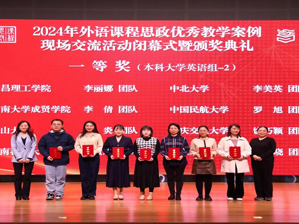 本网讯(通讯员:王冰睿)11月17日,2024年外语课程思政优秀教学案例现场交流活动在天津大学顺利落下帷幕。本次活动由教育部高等学校大学外语教学指导委员会指导,高等教育出版社、全国高校网络培训中心和中国外语编辑部主办,外国语学院李静教师团队(李静、郝亮、刘倩、王冰睿、王春晓)喜获国赛一等奖。