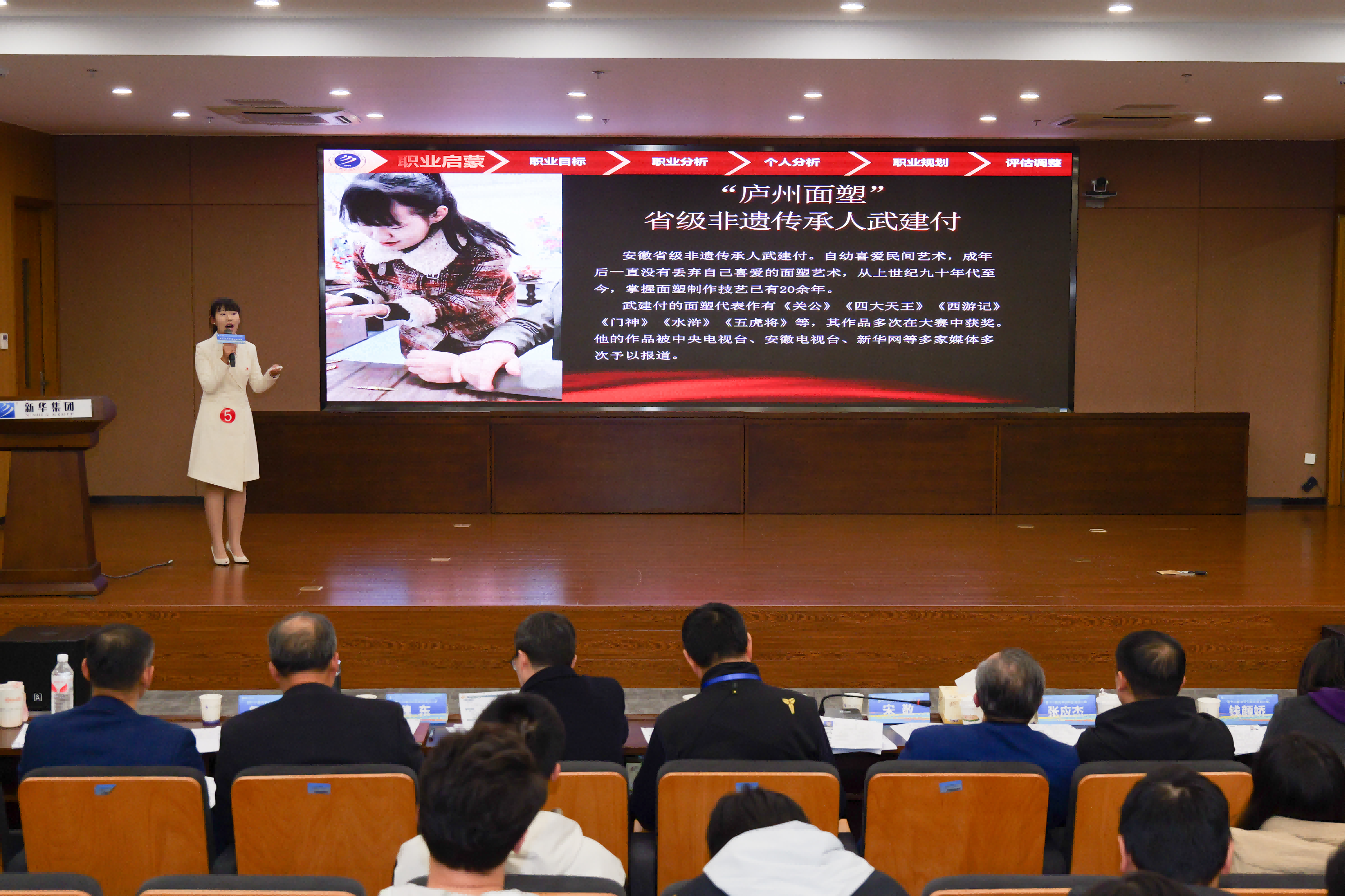 中国科学技术大学招生就业处郝心远老师对大赛进行点评,他指出大赛不仅是一个展现学生才华和规划能力的平台,更是推动高校生涯教育与就业指导工作的重要力量。他对bat365选手的表现给予高度赞扬,他们将个人的职业目标与国家、社会经济的发展紧密相连,不仅体现了新华学子勇于拼搏、奋斗务实的精神风貌,更展现了投身基层事业,将青春献给祖国的家国情怀。同时,他结合大赛的评选要求,对参赛选手们的职业规划和现场表现进行了深度剖析,表达了对参赛选手们未来发展的期待,鼓励大家继续通过赛事及生涯实践活动,真正让职业规划持续发展起来。