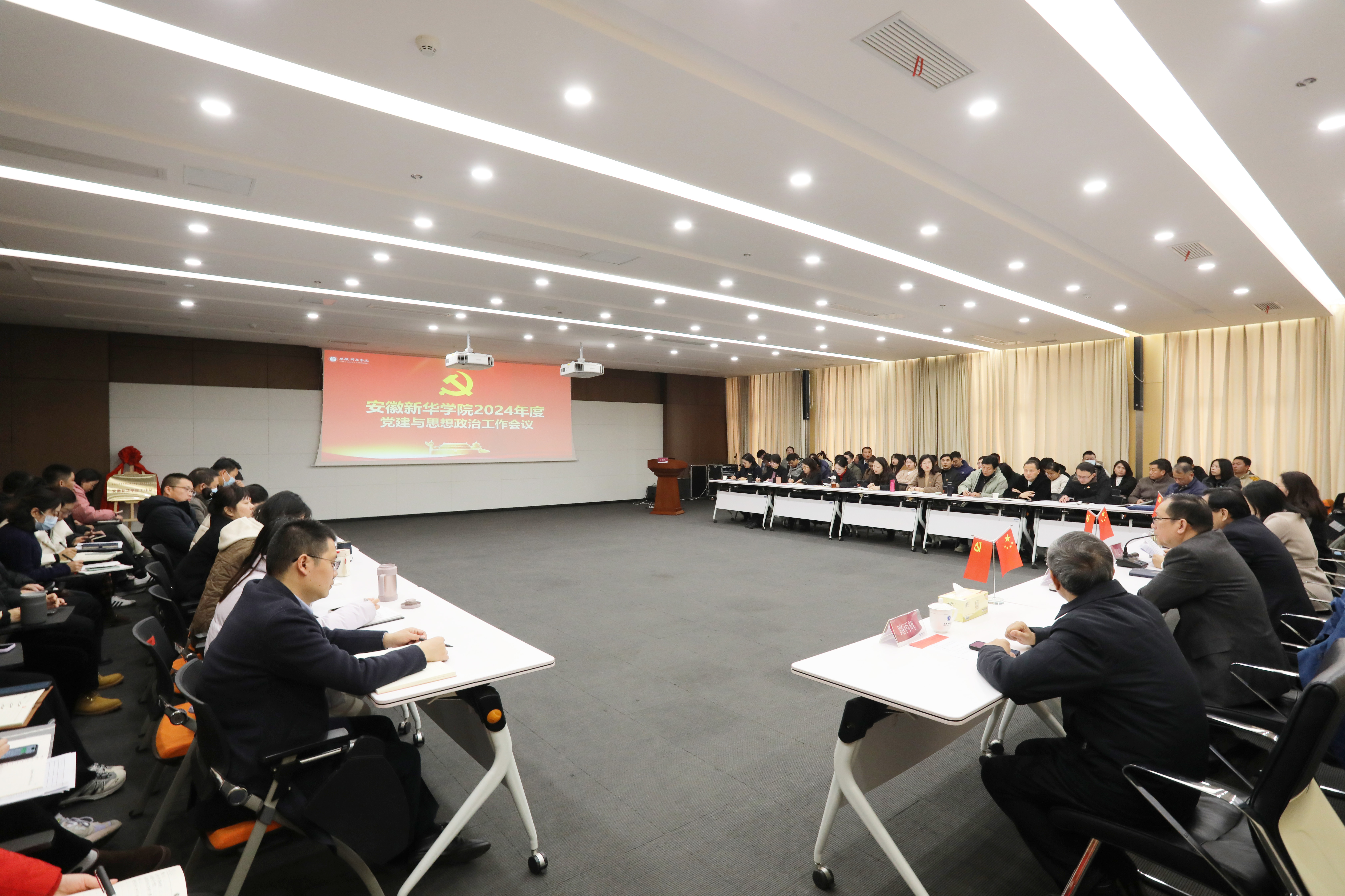 他强调,2025年是“十四五”规划收官之年,也是学校硕士点建设的关键之年、奋进之年,学校党建与思政工作做到以下几点,一是强化党的政治建设,提升党建工作引领力;二是加强基层党组织建设,增强党组织组织力;三是深化“大思政”工作格局,发挥思政育人品牌力,深化打造厚植新华特色、安徽特色的校园文化品牌;四是抓好意识形态工作,提高各类风险管控力。最后,他要求学校各级党组织、各部门要全面贯彻党的教育方针,紧紧围绕立德树人的根本任务,以高质量党建和思想政治工作引领学校事业高质量发展。