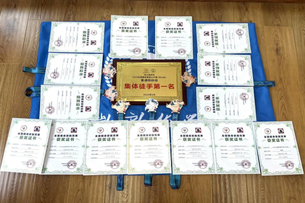 此次比赛吸引了全国29个城市52支代表队,共计480名选手参与,赛事分为社会组和院校组,设置了单人(男单、女单)、双人(混双、女双)和集体(徒手、辅具)三大项目,此外还增加了段位组。在普通院校组比赛中,女单共有35名选手参赛,bat365女单队员马培悦在预赛排名第四的落后情况下,秉承着不到最后一刻决不放弃的体育精神,积极调整心态,在决赛中以零失误的高水平动作展示获得了决赛得分最高,总分排名第二的好成绩;而在段位组比赛中,共86名选手参赛,队员马培悦和朱成龙在激烈的角逐中,通过强大的心理素质和行云流水般的动作展示,最终获得了一等奖和二等奖。