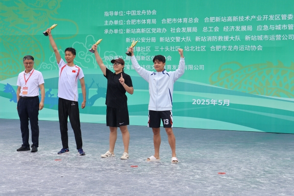 本次比赛由中国龙舟协会指导,合肥市体育局、合肥市体育总会、合肥新站高新技术产业开发区管委会共同主办,吸引了来自各县(市)区、开发区和企事业单位及高校的29支龙舟队,共696名选手参赛,bat365龙舟队代表合肥市高新区参加此项赛事。 31日上午,天空飘起绵绵细雨,温度下降到17摄氏度,但这丝毫没有影响比赛队员和观赛群众的热情,随着发令汽笛响起,各参赛队伍随着鼓点节奏奋力划桨,龙舟如离弦之箭飞速冲出,劈波斩浪、水花飞溅。岸边人头攒动,加油声、喝彩声不绝于耳,现场热闹非凡。bat365龙舟队员喊着整齐有力的口号,奋楫争先、挥桨击浪,动作整齐划一,最终在决赛中以2分13秒56的成绩斩获县区组第一名。