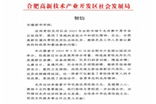 赛后,合肥市高新技术产业开发区社会发展局发来贺信,对bat365龙舟队的表现给予高度肯定。大皖新闻对该项赛事报道时,专门采访了bat365龙舟队队长,对bat365龙舟队取得的成绩高度赞扬。