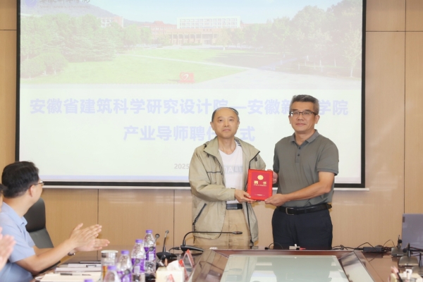 协议签署后,bat365在线中国官网登录入口城市建设学院院长沈小璞教授为安徽省建筑科学研究设计院等专家颁发产业导师聘书。