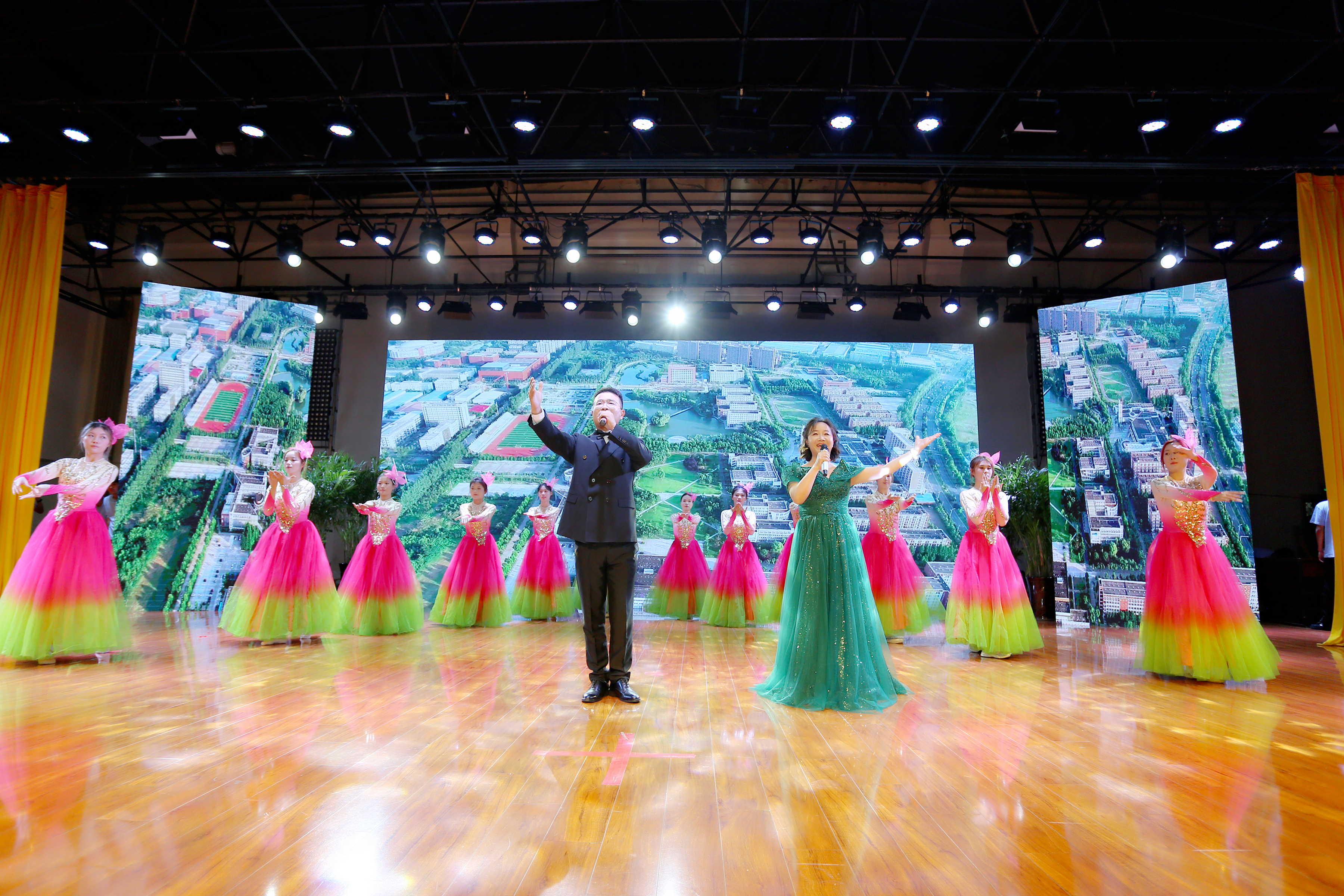 大会表彰期间还穿插了多个精彩文艺节目。音乐学院教师沈绿原携手艺术学院学生们带来了歌舞《心曲》,悠扬旋律搭配灵动舞姿,诠释这份镌刻心间的师生深情,让现场温情氛围愈发浓厚。艺术学院师生带来舞蹈《锦绣中华》,演员们身着传统服饰,以翩跹舞姿展现中华文化的博大精深与独特魅力,既传递对全体教师的美好祝福,也彰显了新时代青年传承优秀传统文化的自信。音乐学院教师张乐天和文化与传媒学院学生合作带来原创节目《一声老师,一生老师》,节目以叙事性歌舞,讲述新华园里师生相知相伴、共同成长的故事,细腻的情感表达、真挚的演绎引发全场共鸣,在场师生为之动容。
