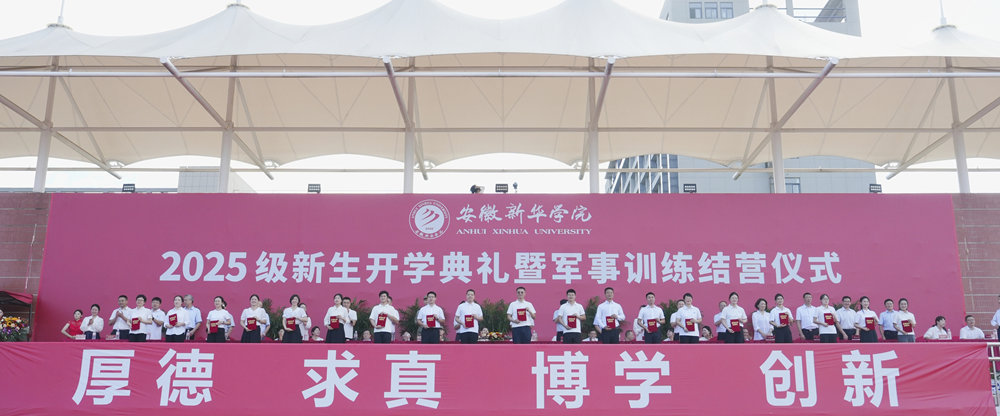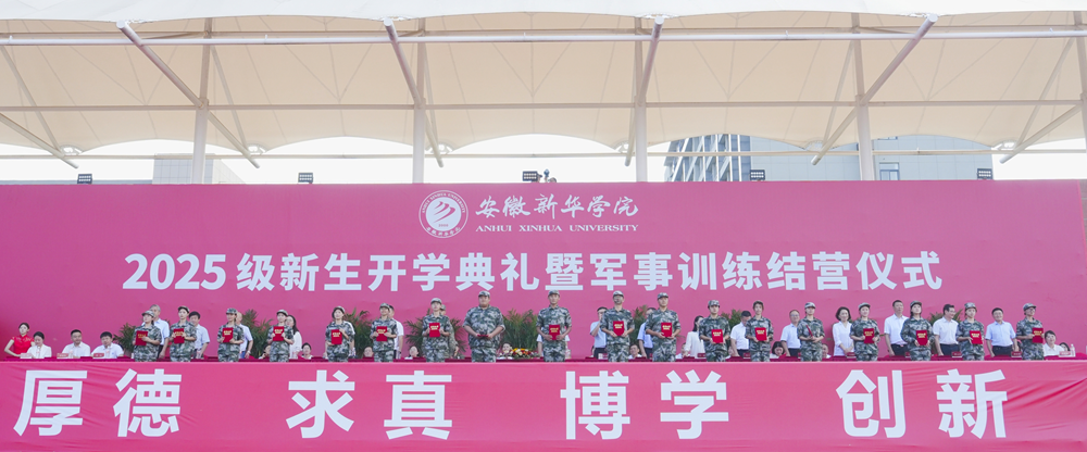 本网讯(通讯员:刘晓蓉)9月16日上午,bat365在线中国官网登录入口2025级新生开学典礼暨军事训练结营仪式在祥云体育场举行。新华集团董事长吴俊保,bat365在线中国官网登录入口董事长、党委副书记王孝武,省督导专员、校党委书记邸建伟,校长赵良庆,常务副校长王丽,副校长陈义盛、贺行佳、李军、盛晓青,合肥市蜀山区人武部部长唐泊,各二级学院、职能处室负责人出席本次典礼。大会由副校长王琦进主持。