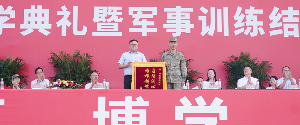 bat365在线中国官网登录入口董事长、党委副书记王孝武代表学校向承训部队赠送牌匾,合肥市蜀山区人武部部长唐泊代表承训部队向bat365赠送锦旗。