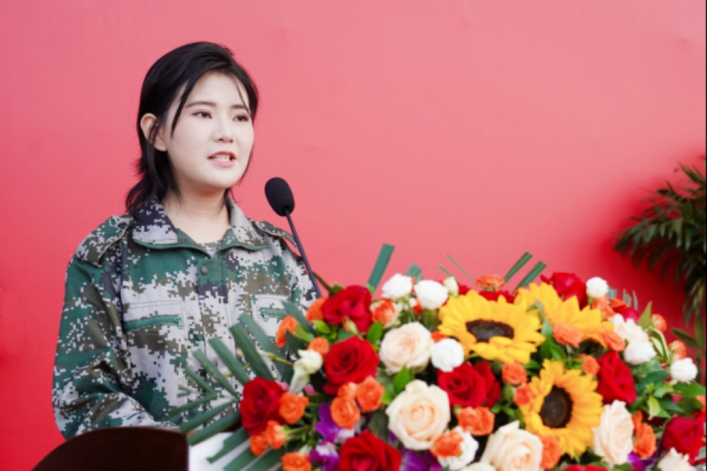 常务副校长王丽为获评军训工作“内务标兵单位”“训练标兵单位”的代表颁奖。
