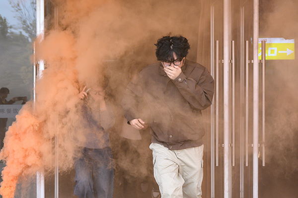 活动首先开展了消防应急疏散演练。14:50,学校餐厅烟雾火情警报紧急拉响,疏散引导员迅速组织学生向楼外紧急疏散。3分钟内200余名学生和食堂工作人员紧张有序地全部安全疏散完毕。