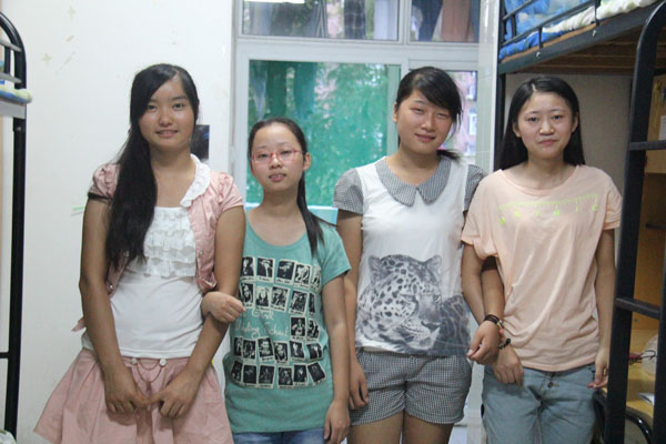 9月1号,记者再次来到此宿舍,一个有点胖胖的可爱女孩打开了门,她叫邱婷婷,一个乐天派女孩,宿舍里的活宝。因为有她,整个采访氛围很融洽。她的室友们常被其逗得捧腹大笑。在交谈中,记者发现这次来合肥上学是她们第一次出远门,因为有爸妈陪着,所以没有那么害怕。昨天爸爸妈妈为她们铺好床铺吃完饭就那么走了,心里不免难过、失落,但她们又同许多大学生一样像冲破笼子的鸟向往自由,渴望飞翔。邱婷婷说父母走时总是回过头来看我,眼神里充满不舍、担心。而她笑着说;“没事没事,快走吧!我一个人好得很。”